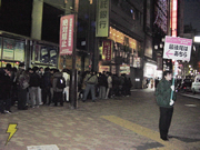 事前にカウントダウンイベントの実施が告知されていた「SHIBUYA TSUTAYA」。朝6:00には、PSPをいち早く手に入れるために徹夜で並んだ人の行列ができあがっており、カウントダウンイベント開始時間には、始発で駆け付けた人を加えて約200人ほどの行列となった。