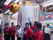 店頭ではくす玉が用意され、販売開始時刻の10秒から店長をはじめとするスタッフと集まったお客さんがカウントダウンを実施。6:55に「ただ今よりPSPの販売開始です」という掛け声とともに店長の手によってくす玉が割られ、華やかに販売が開始された。