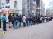 「ニンテンドー DS」と同様「PSP」も、6:55からの早朝販売を実施した池袋ビックカメラ本店。気温9度という寒空の下、「PSP」を求めて同店舗に集まった人数はなんと1,200人。行列の先頭にいた男性は昨夜20:30頃から待っていたそうで、店頭スタッフの話によると昨日の閉店時刻にはすでに100人~200人が列を作っていたとのことだ。