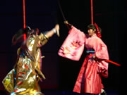 2002年1月の新春歌謡ショウ「春恋紫花夢惜別」から花組を一時離れていた富沢さんだが、“すみれ”ならではの高飛車な笑い声や、“桐島カンナ”役の田中真弓さんとのテンポのいいかけ合いは健在。ブランクを感じさせない、クオリティの高い演技と歌を披露してくれた。