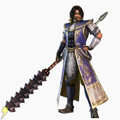 力なら“呂布”にも匹敵するといわれた豪傑“張飛”。武器は、今までのシリーズでも愛用していた蛇矛のようだが、両端に刀があるようでさらに攻撃力が増している? | |