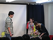 生アフレコには、ジャンケン大会で勝ち残った観客の男性も参加した。アフレコ終了後、「声が(普段と)変わらなかったのはすごいです」と、門脇さんからお褒めの言葉が。