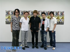 アフレコ取材に参加した声優陣。左より速水奨氏、若本規夫氏、森川智之氏、保志総一朗氏、中井和也氏。一連のドラマCDの最終盤ということで、すべてを出し切り満足だった様子。