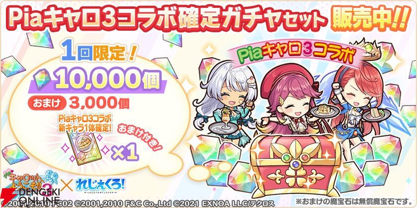 Piaキャロットへようこそ!!3コラボを記念して、本日より最大50連分、1日1回10連無料で引くことができるガチャを開催します!