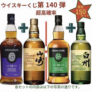 今回は当たりが2倍近くに増量! 21,880円でスプリングバンク18年+山崎12年、スプリングバンク15年+白州12年のセットなどを狙える2本セットの『ウイスキーくじ』が販売中