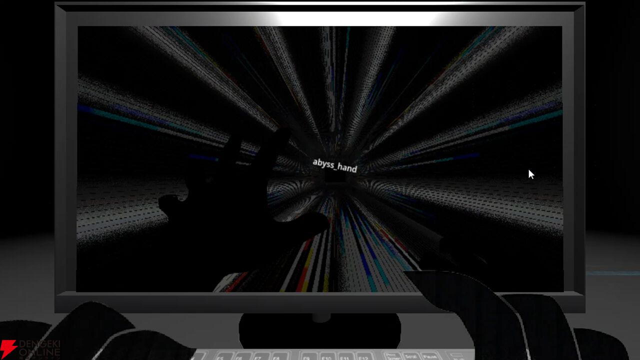 データ空間に捕らわれたプレイヤーは、目の前のモニターでレトロゲームをプレイしながら背後の脅威に対処しなければいけません。
