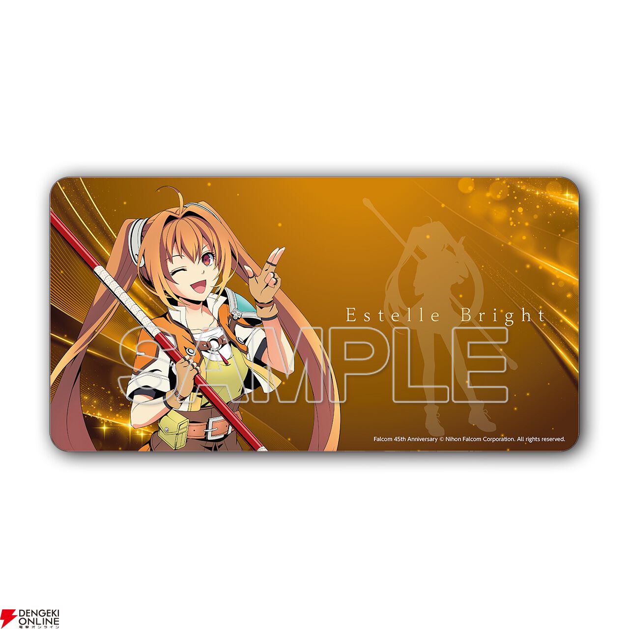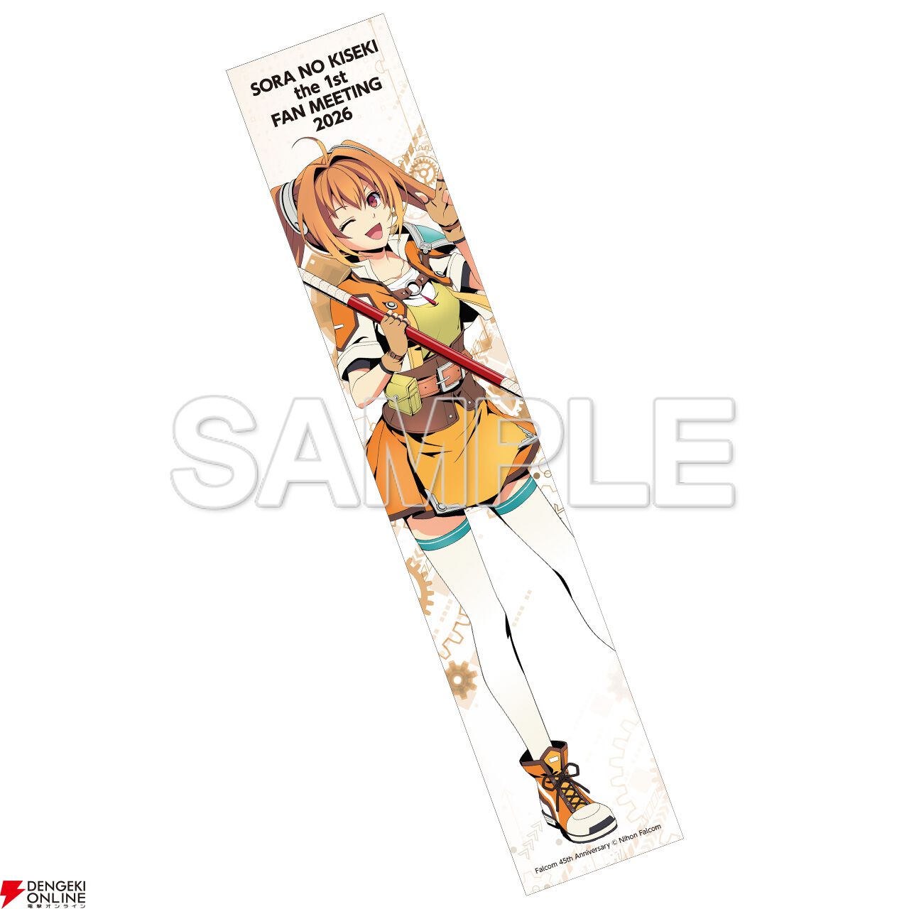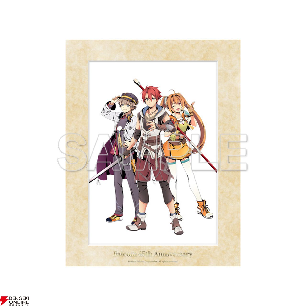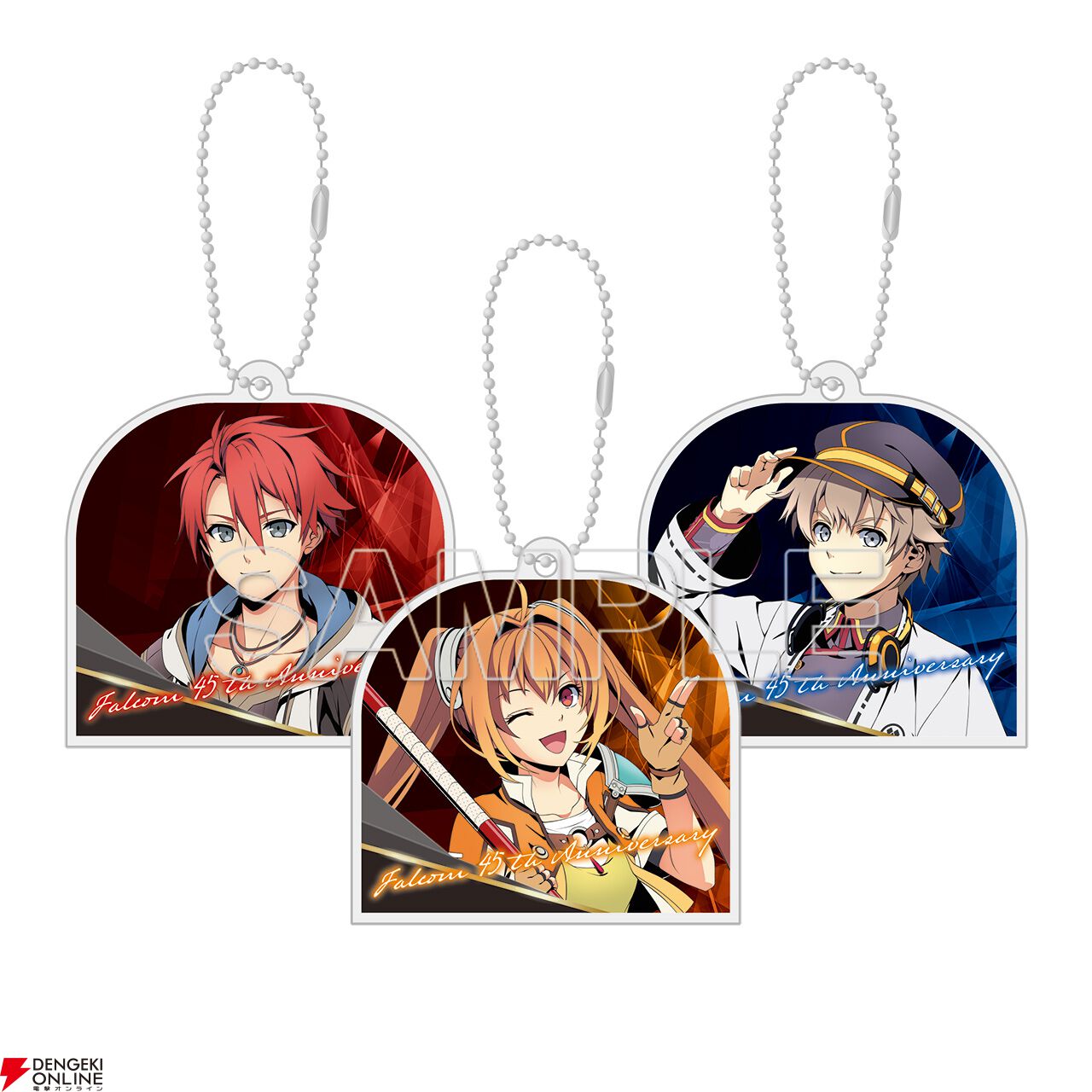 日本ファルコム45周年記念の描き下ろしイラスト(アドル&エステル&レイ)を使用した各種アイテムを始め、ファルコム電撃ストア(ebten)で予約受付中の「軌跡シリーズ ぬいぐるみキーホルダー」の会場先行販売など、多数のグッズを販売予定。