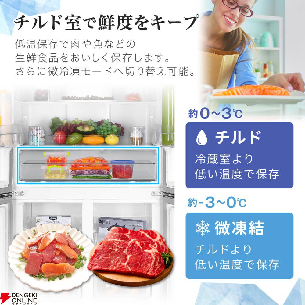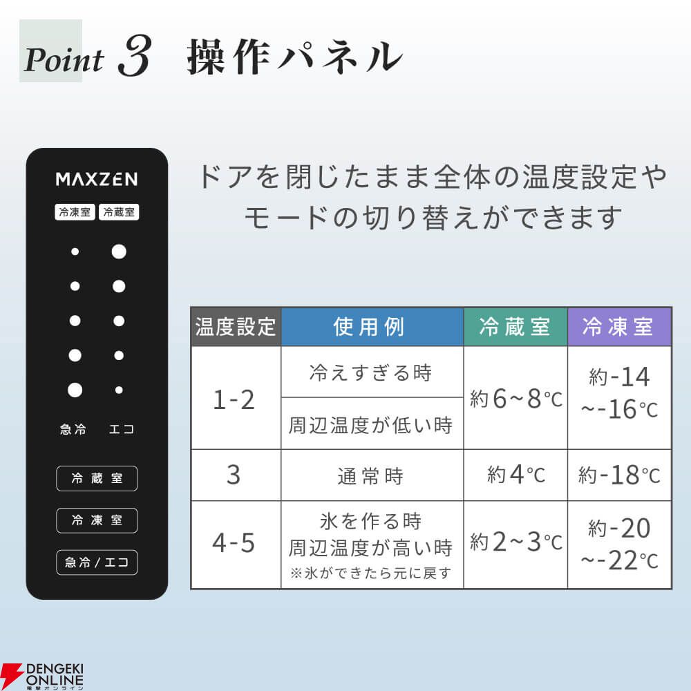 自動霜取りで霜取り不要と扱いやすく、一人暮らしにも最適です。