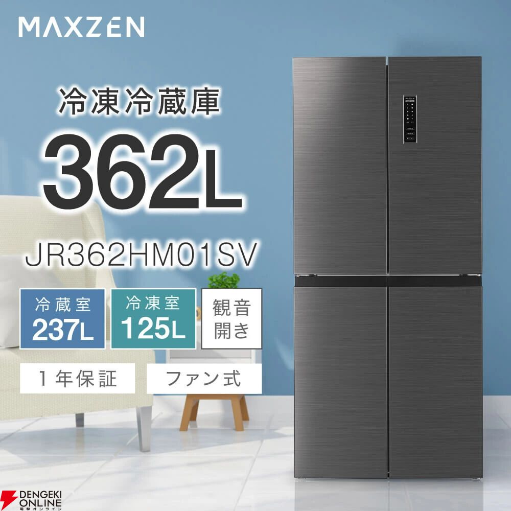 MAXZENの大容量冷蔵庫『JR362HM01SV』