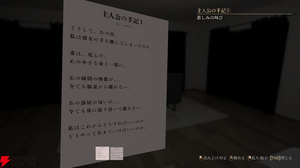 暗い院内を探索し、残されたメモやアイテム、周囲のオブジェクトを詳細に調べていくことが本作の醍醐味となります。