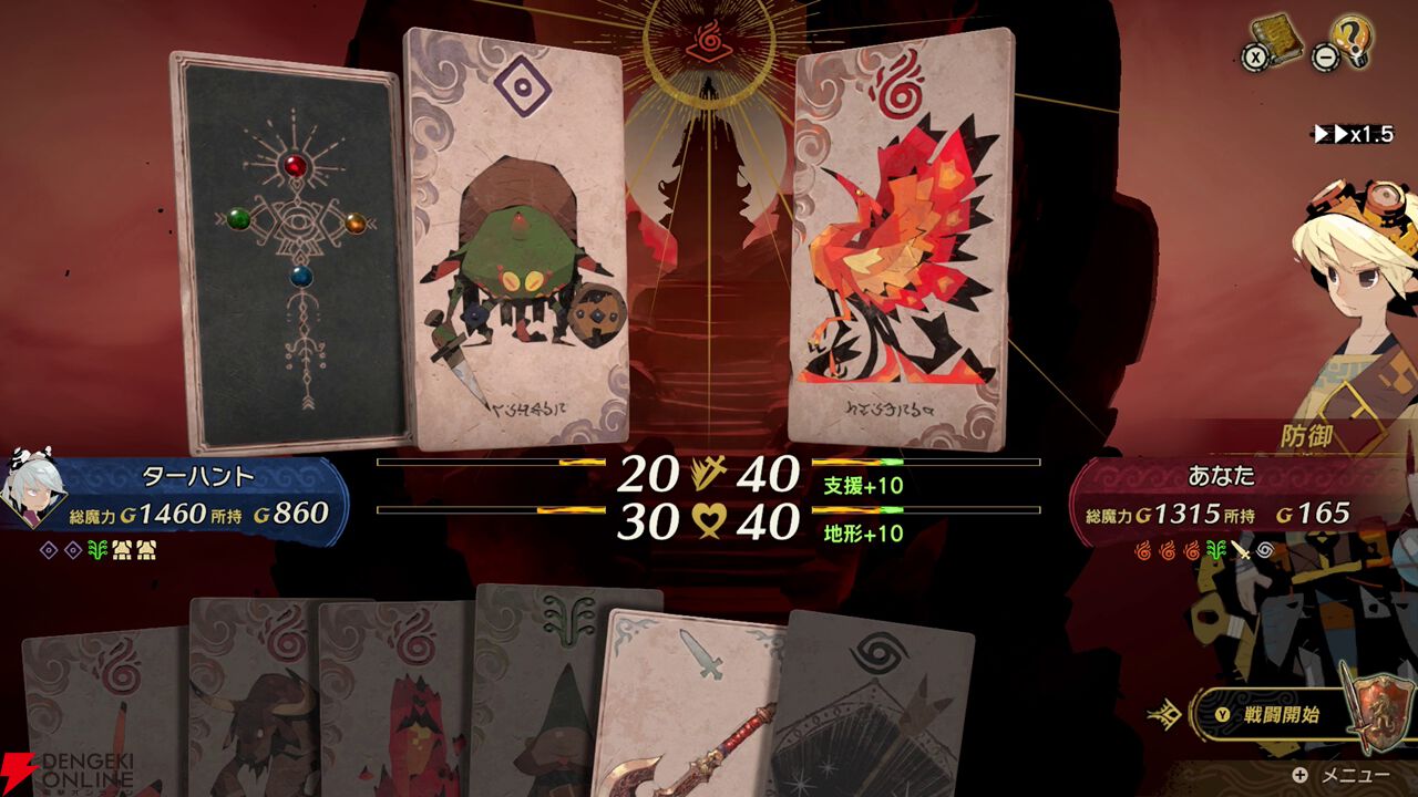 とはいえ、相手の手札などプレイヤーが把握できる情報が多い分、思考時間はやっぱり長くなるので、1ステージのプレイがサクッと終わるかというと、決してそんなことはないわけですが……。倍速機能もあわせて、プレイヤーの思考以外の部分をできるだけ高速化して、『カルドセプト』をよりとっつきやすいゲームにする……という開発陣の意図は明確に感じられましたね。