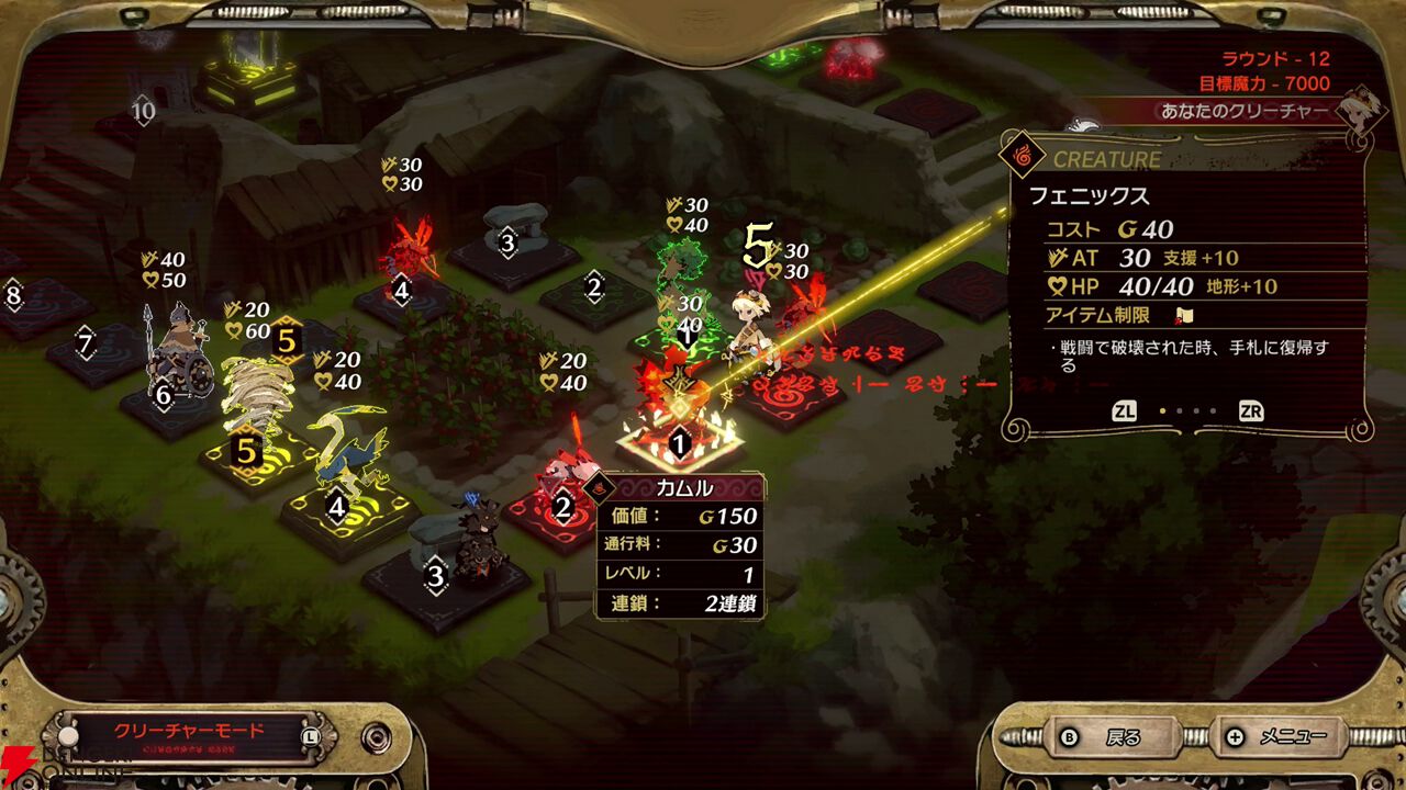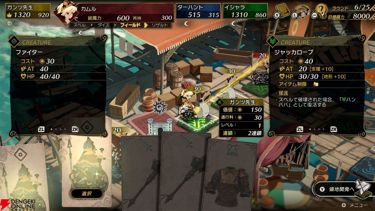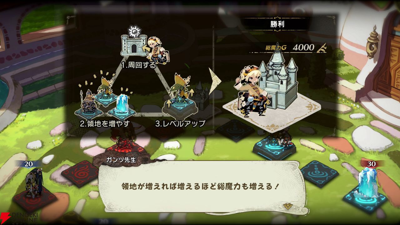 まだまだ目標ポイントが遠いと思っていても、中盤を過ぎたあたりで一気に加速するのは従来のシリーズと同じですが、今回は序盤からクリーチャーもガンガン配置して、土地のレベルアップも積極的にできたりして、全体的に獲得できる魔力量が従来よりも増えているのかなという印象を受けましたね(このあたりは完全に自分の体感になってしまうんですが)。