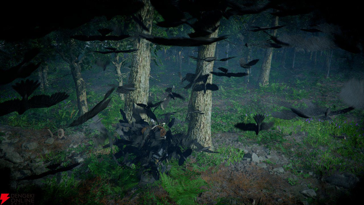 カラスのようなものに襲われ、少し前の場所に戻されることに! ダメージはなくデメリットもないですが、強引に進もうとしても無理そうですね。残念!