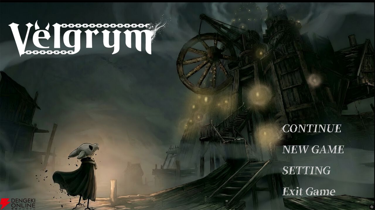 首元には重々しい南京錠のようなものが付けられており、巨大な歯車や古びた木造の建造物がそびえたつタイトル画面からすでに、美しくも退廃的なダークファンタジーの香りが漂ってきました。