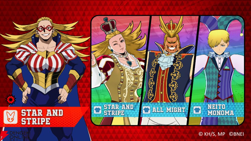 バンダイナムコエンターテインメントより配信中のPS4/Nintendo Switch/Xbox One/PC(Steam)用オンライン専用多人数対戦アクション『僕のヒーローアカデミア ULTRA RUMBLE』にて、3月25日より2.5周年期間および、シーズン16が開幕し、新プレイアブルキャラクターとして“スターアンドストライプ”が実装されました。