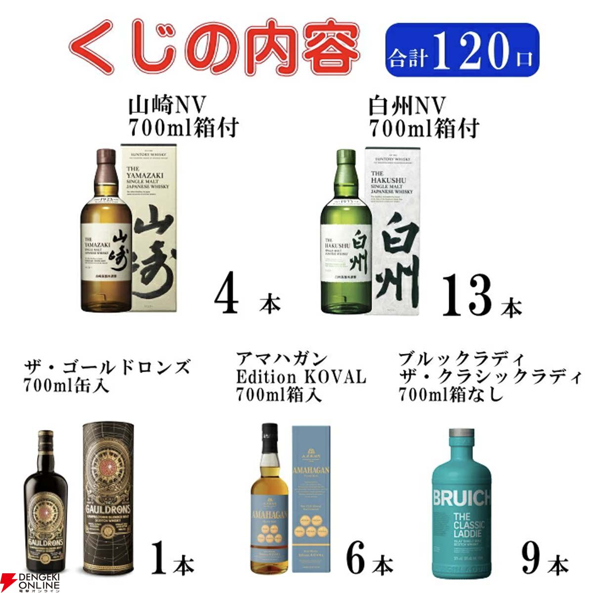 なお、同じくラストワン賞のあるウイスキーくじ2種も販売中なので、興味のある方はそちらもチェックしてみてください。