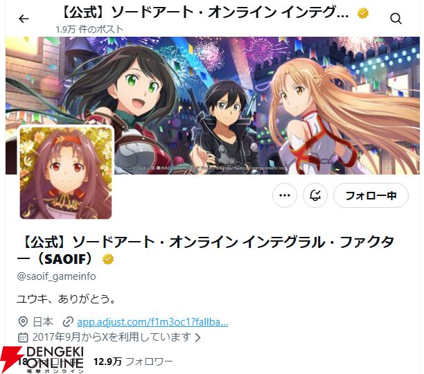 本日3月29日は『ソードアート・オンライン』に登場するキャラクター・ユウキの命日ですが、それにあわせて『ソードアート・オンライン インテグラル・ファクター(SAOIF)』公式Xの紹介テキストなどが変更されています。