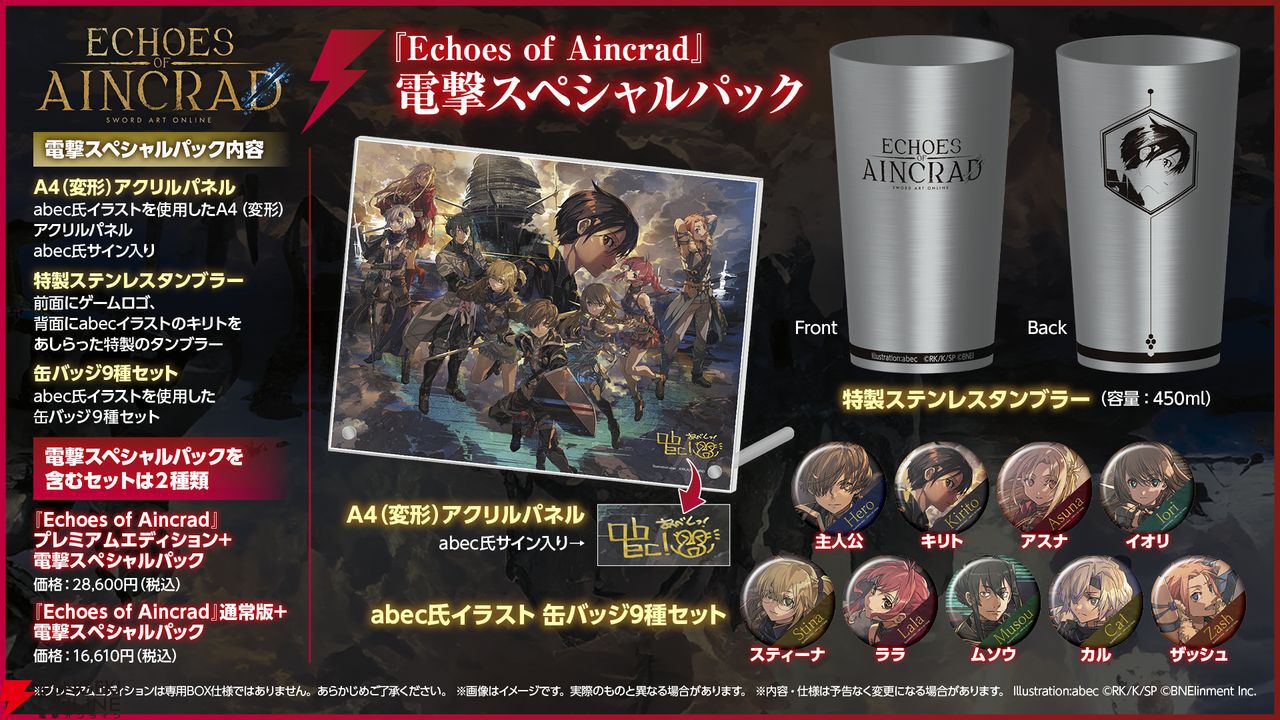 『ソードアート・オンライン』の家庭用ゲームシリーズ最新作『Echoes of Aincrad(エコーズ オブ アインクラッド)』について、さまざまな特典をプラスしたプレミアムエディション、そして“電撃スペシャルパック”の予約を受け付け中です。