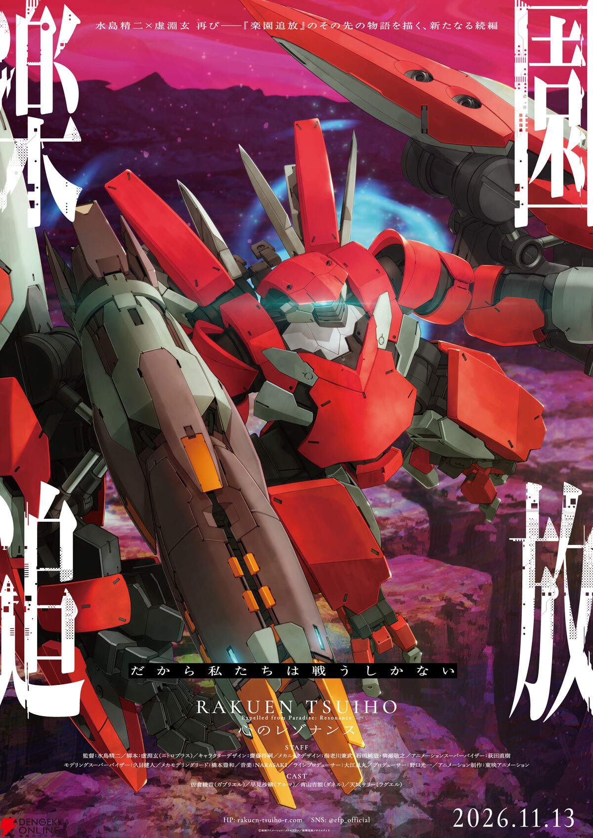 そして、2026年には待望の次回作『楽園追放 心のレゾナンス』が公開予定。水島精二監督のもと、脚本・虚淵玄氏(ニトロプラス)、キャラクターデザイン・齋藤将嗣氏、音楽のNARASAKI氏のメインスタッフ陣が再集結し、“その先の新たな物語”を描きます。
