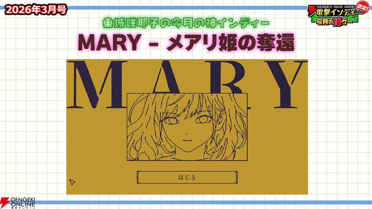 2026年3月の“神インディーゲーム”は、東城咲耶子さんがプレゼンした『MARY - メアリ姫の奪還』に決まりました!