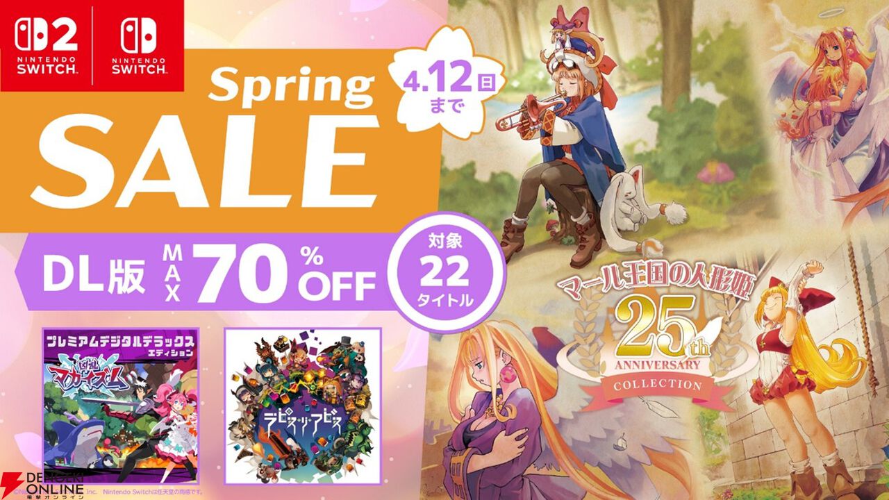 日本一ソフトウェアは、ニンテンドーe ショップにて、3月29日~4月12日まで、日本一ソフトウェアのダウンロード版タイトルが最大70%OFFになるセールを開催中です。