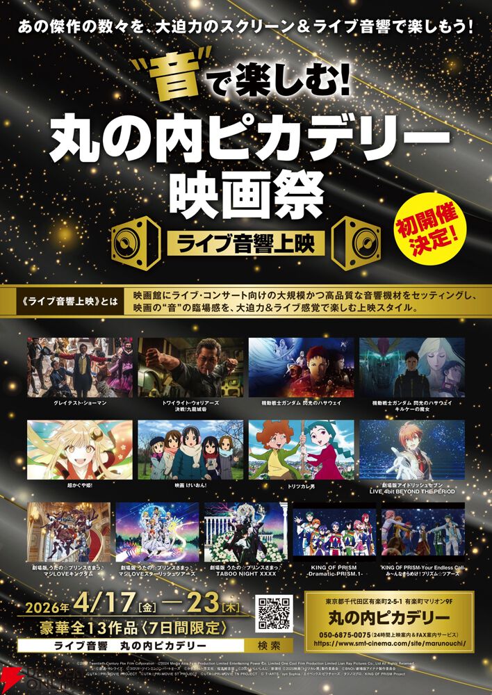 『“音”で楽しむ!丸の内ピカデリー映画祭《ライブ音響上映》』が、2026年4月17日(金)~23日(木)の7日間限定で、東京都千代田区の丸の内ピカデリーにて開催されます。