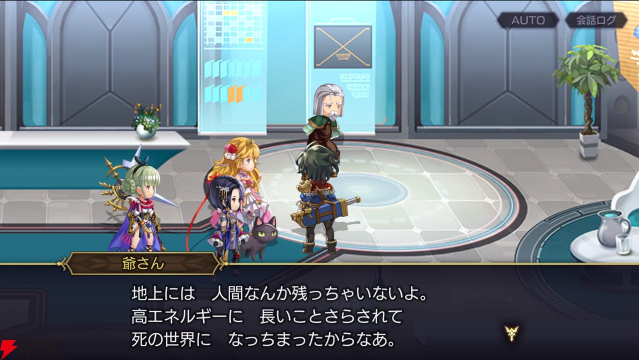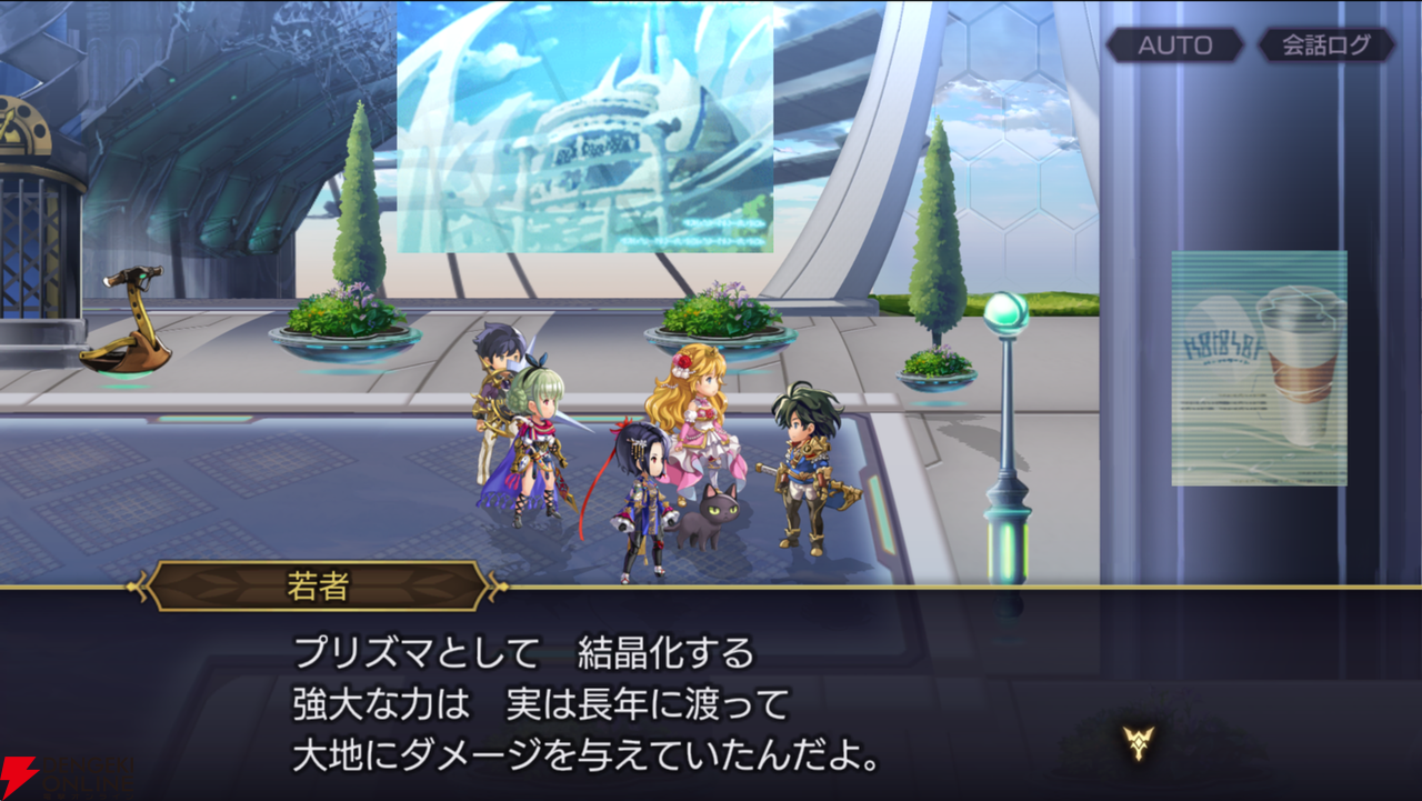 そして、アッサリ通してくれたエルジオンでNPCに話しかけると、けっこうショックなワードも飛び交っていました。地上が人間のいない死の世界になってしまったこと、そしてその原因がプリズマだったことなどが、過去の歴史として淡々と語られます。