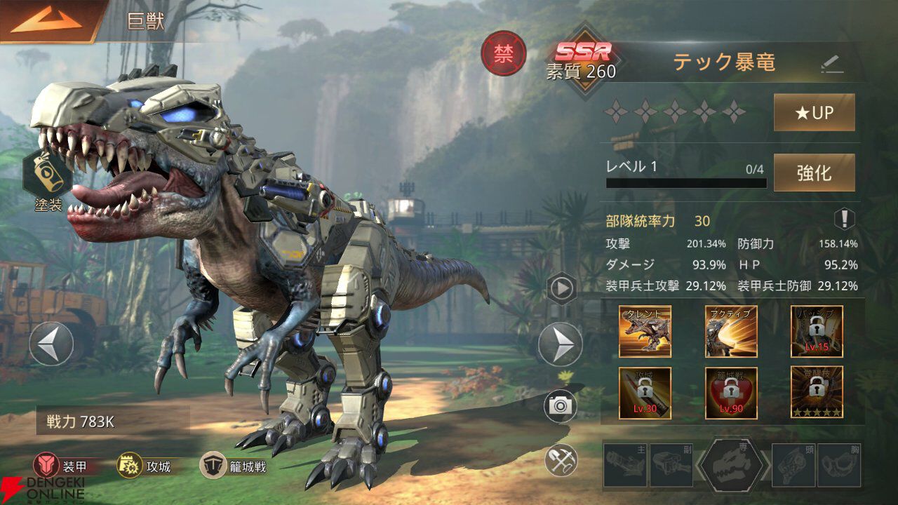 各種スキルはレベルアップで解放され、さらにスキルレベルを上げることで効果量などがアップします。スキルは巨獣ごとに個性がさまざまなので、より強みを生かしたい場合はスキルレベルも重要になるでしょう。