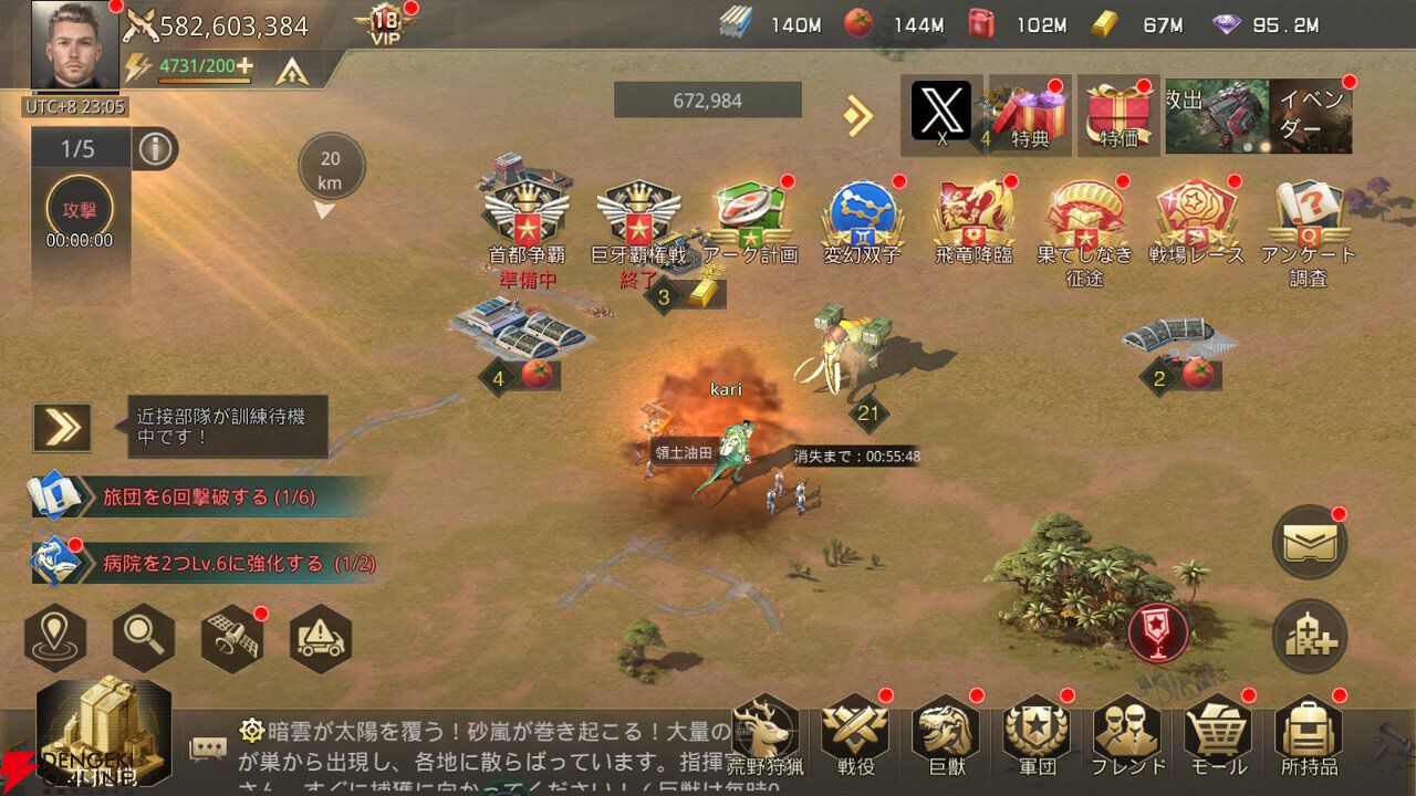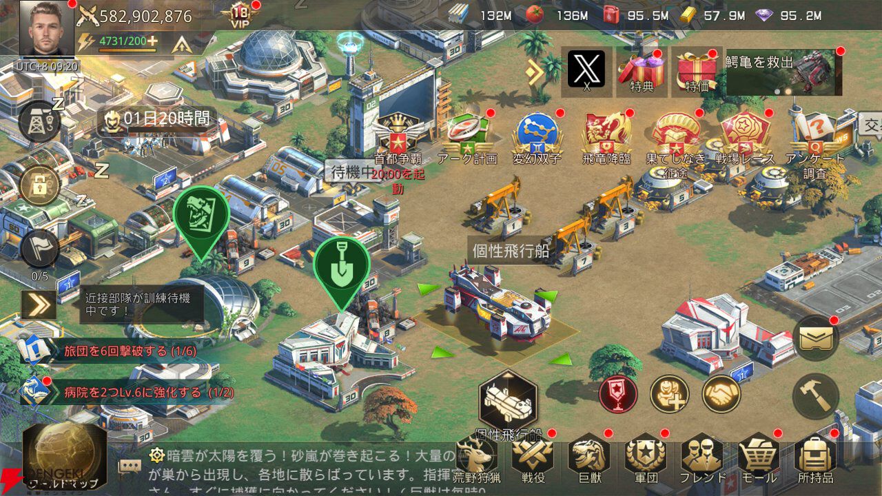 巨獣だけではなく、戦車や戦闘機などの近代兵器も用意できます。こちらは資源を消費して、時間経過で募集可能です。