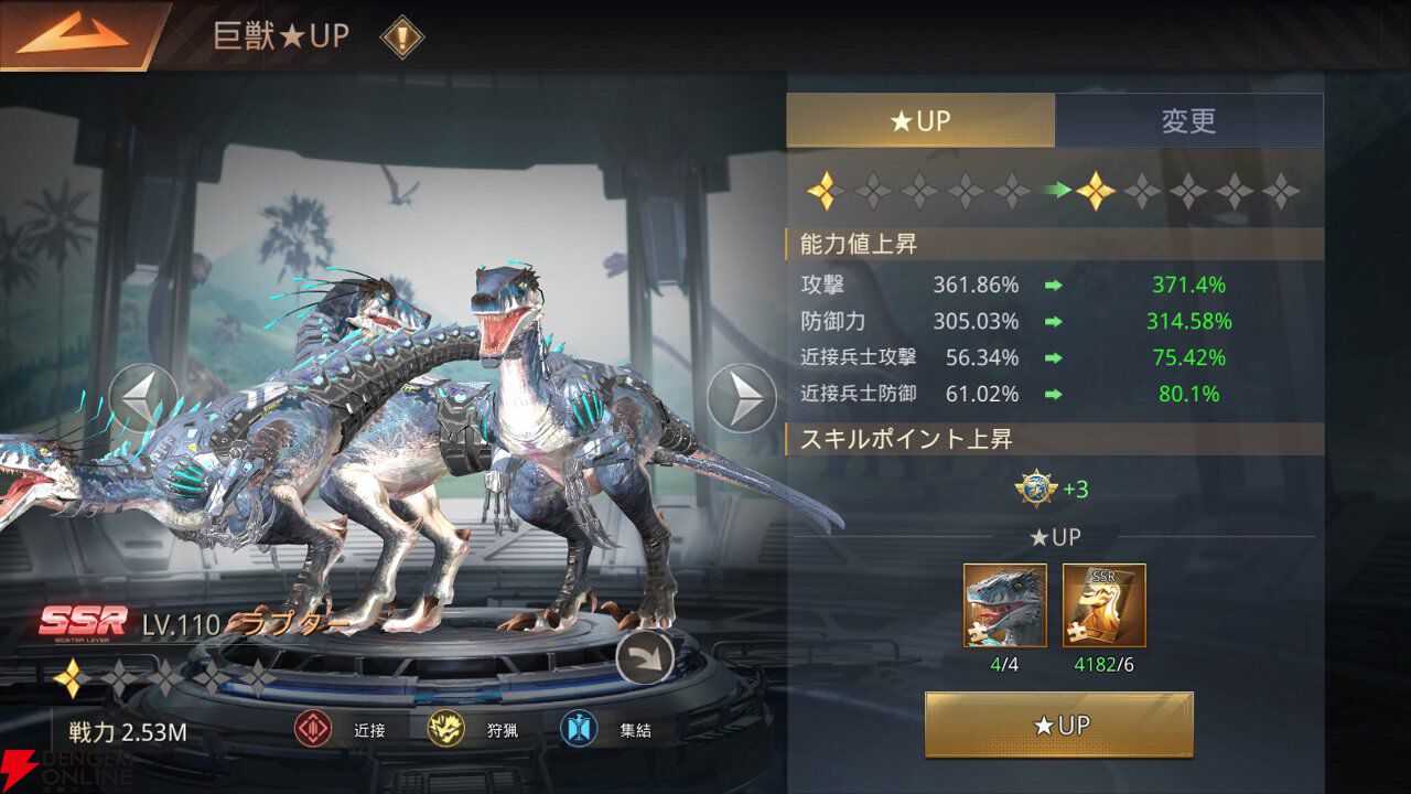 進化によって星ランクやレアリティが上昇し、戦闘力の底上げが可能です。低レアリティの巨獣であっても立派な戦力にすることが可能!