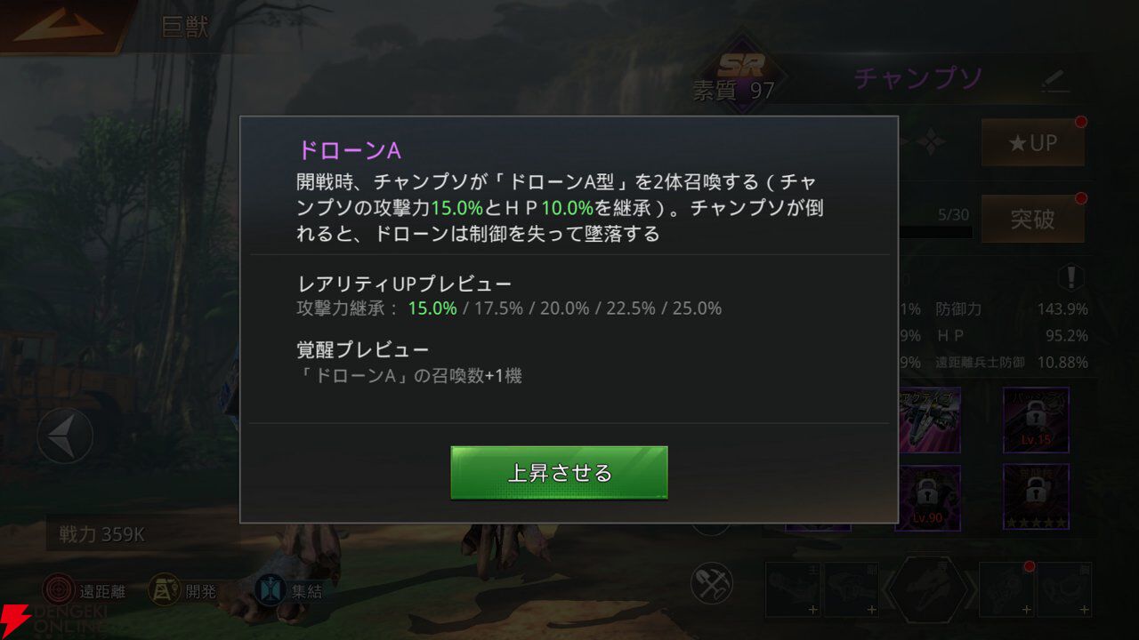 巨獣を強化していくと戦力値が上昇していきますが、戦力値だけで勝負が決まらない戦略性も『巨獣戦線』の魅力。