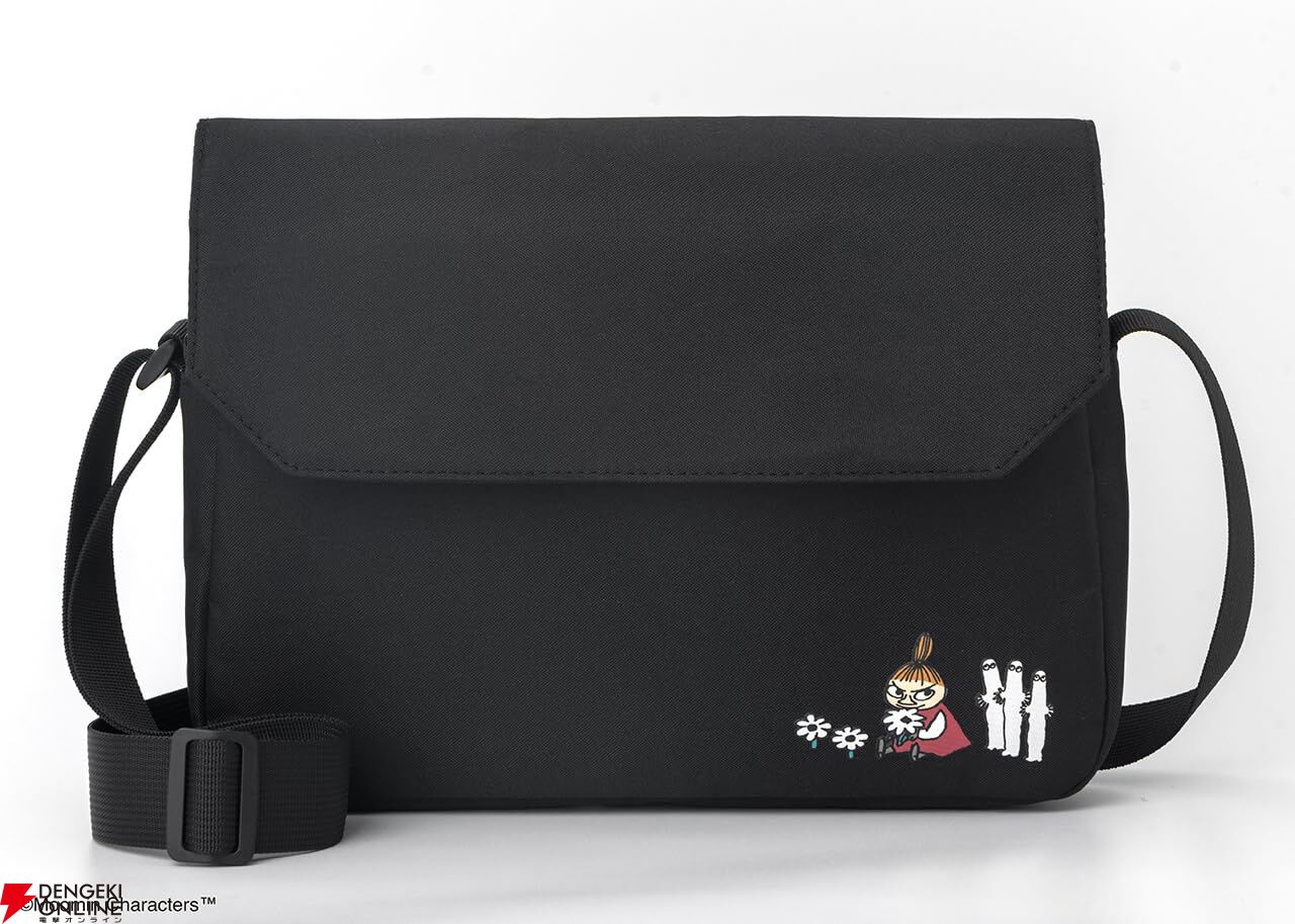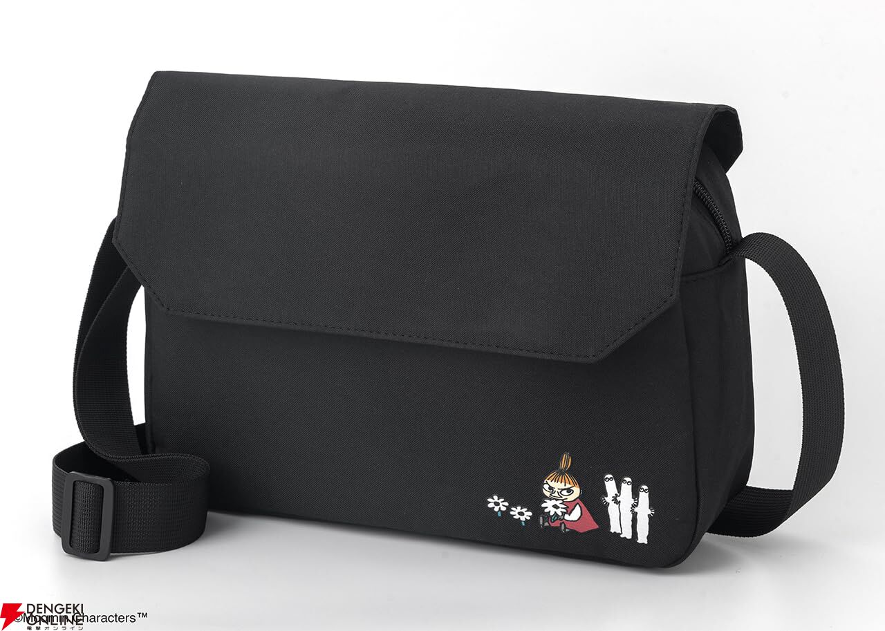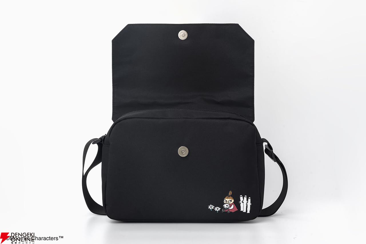 どんなコーデにも合わせやすいブラック生地で、リトルミイとニョロニョロのデザインがワンポイントに。大人かわいく毎日使えるショルダーバッグです。