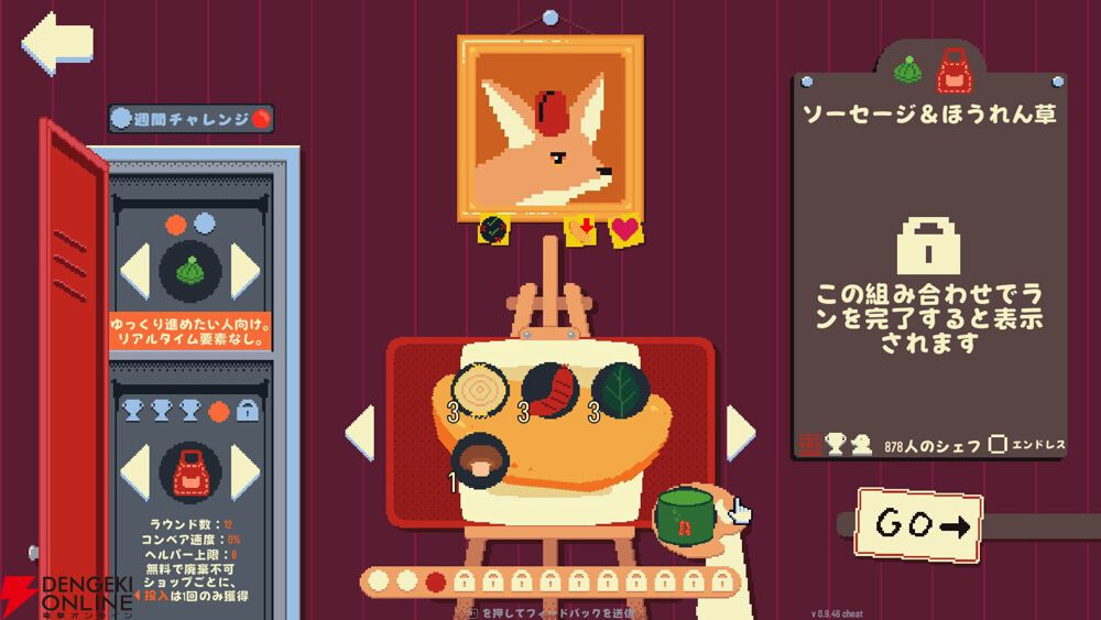 組み合わせだけでなく配置も重要なポイントになっていて、一度置いた食材は動かすことができないので、先を見据えて食材を選んでいかなければならない戦略性が問われる内容になっています。