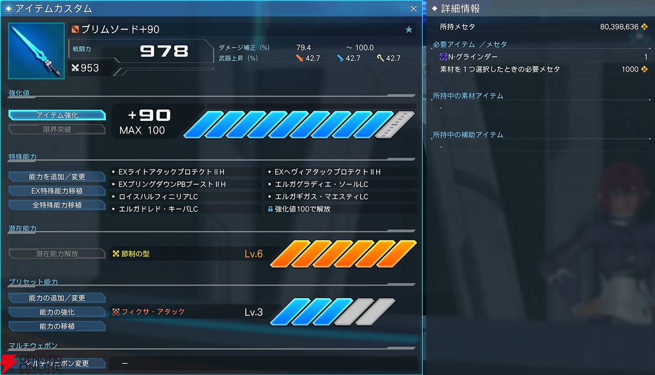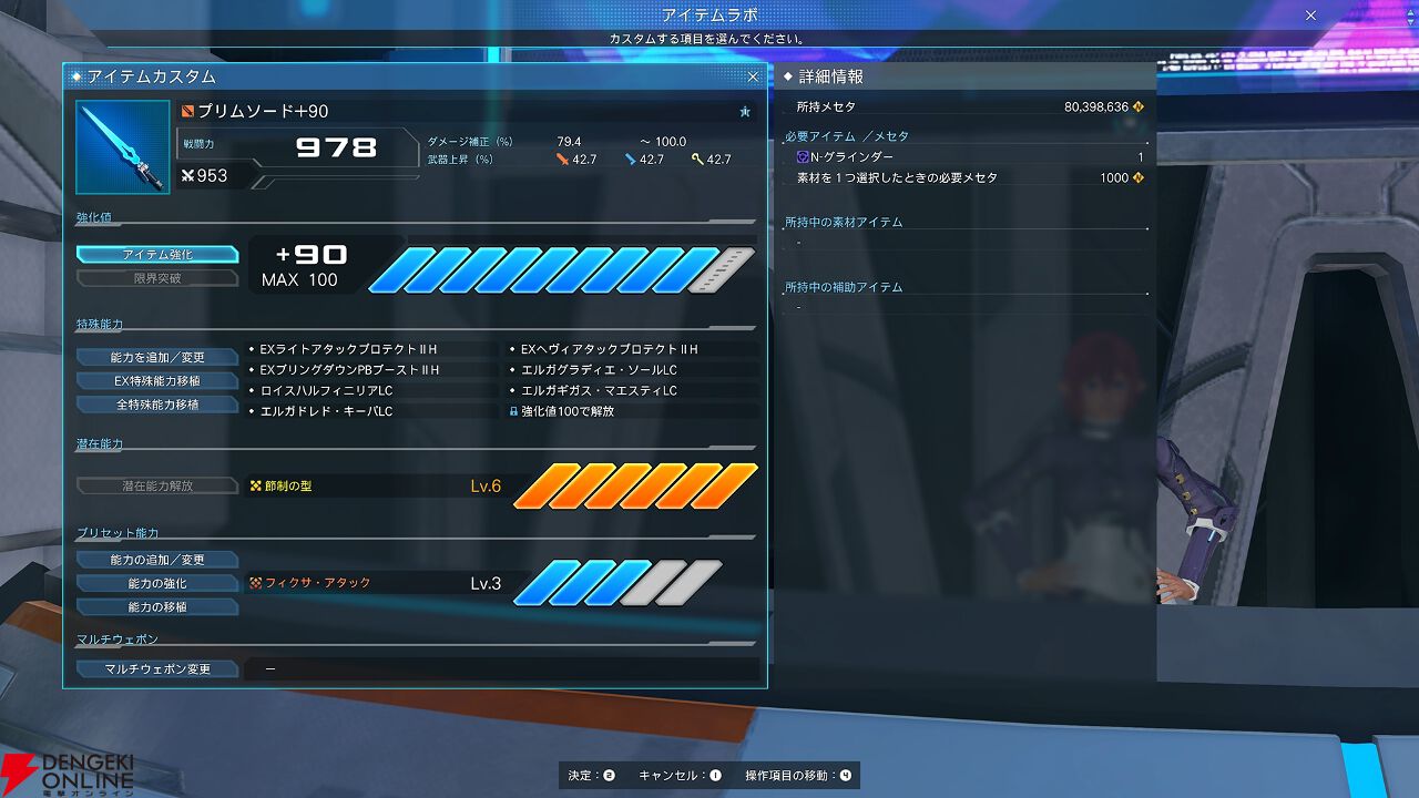 また、武器や防具のベースアイテム選択画面、強化項目選択画面での強化状況がわかりやすくなるようにレイアウトも変更が加えられます。1つの装備に集中して強化しやすくなる変更になっています。