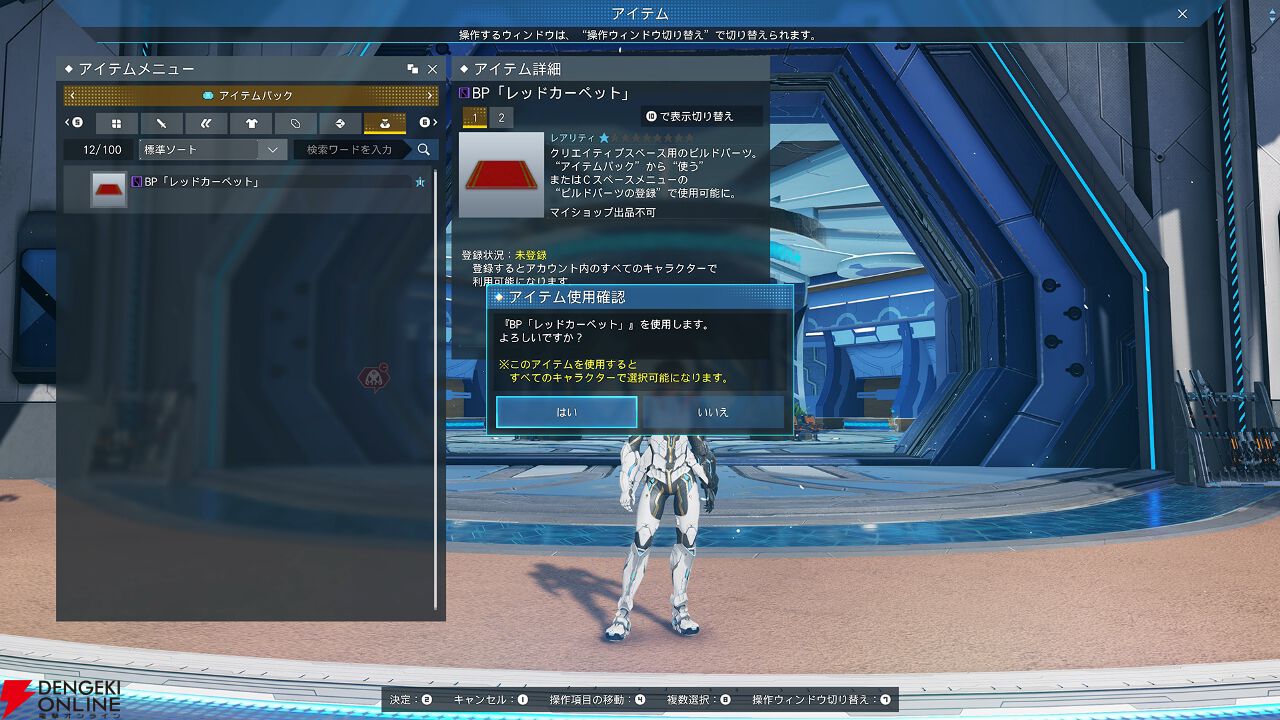 これまで、それぞれ専用の画面から登録していたビルドハーツなどのアイテムが、アイテムパックから登録可能になります。なお、登録したアイテムを使用するには、これまでどおり専用画面から選択する必要があります。