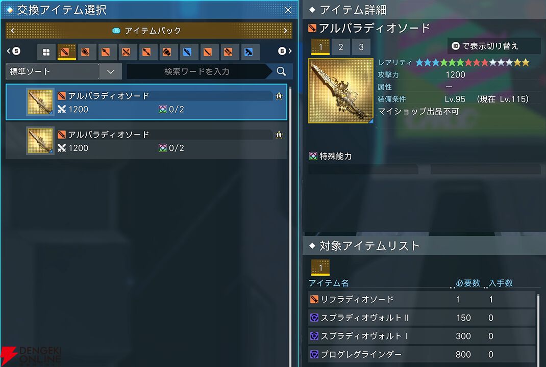 レアリティ★14武器“アルバラディオ”シリーズが実装されます。“アルバラディオ”シリーズは、★14武器“リフラディオ”シリーズからアップグレードで入手可能。アップグレード後は、武器のパラメータが上昇するほか、“リフラディオ”シリーズの潜在能力に“一定時間ごとにHPが回復する効果”が追加されます。アップグレード素材の“スプラディオヴォルトII”は、期間限定クエストなどで入手できます。