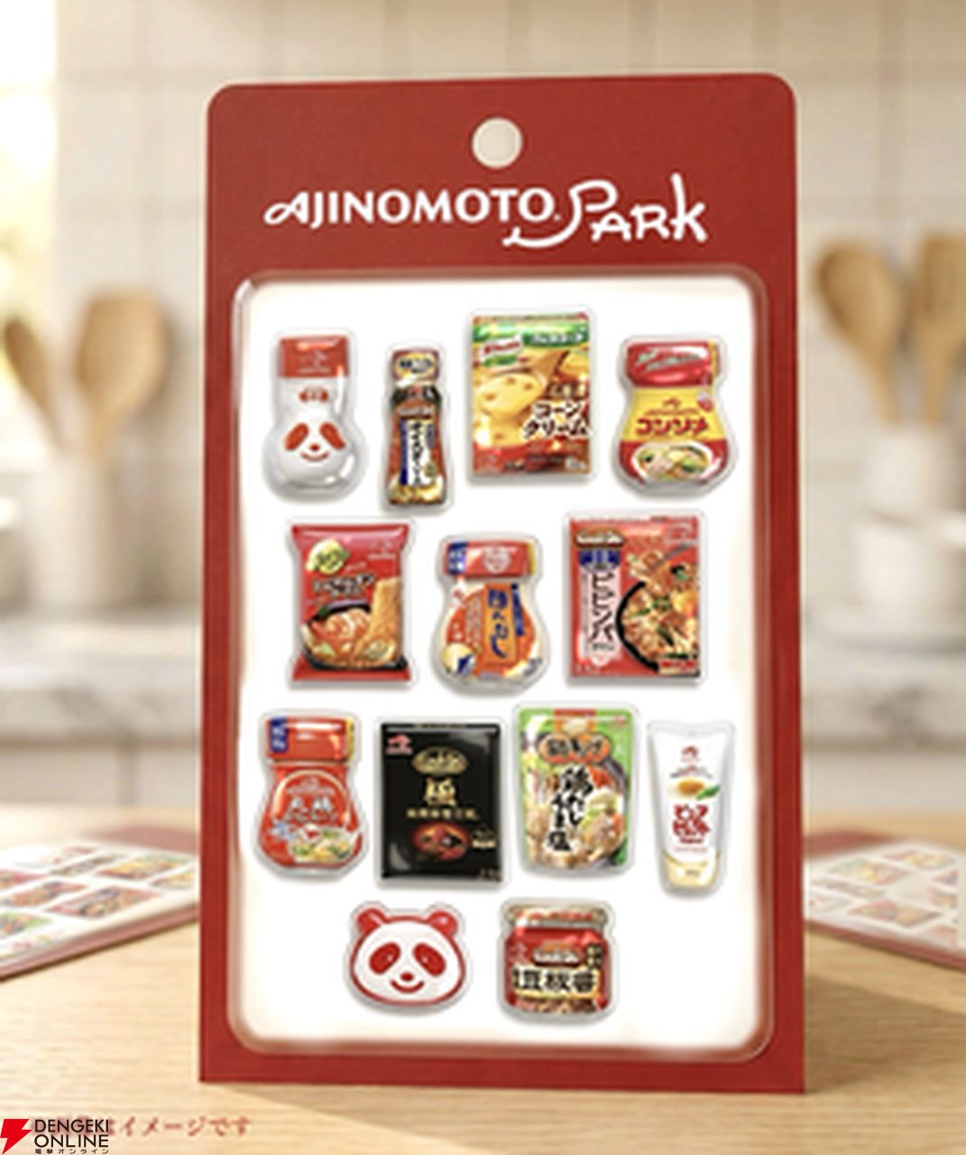 “味の素”や“ほんだし”のビンであったり、“Cook Do”シリーズの商品のパッケージがプリントされた、立体的なシールが公開。