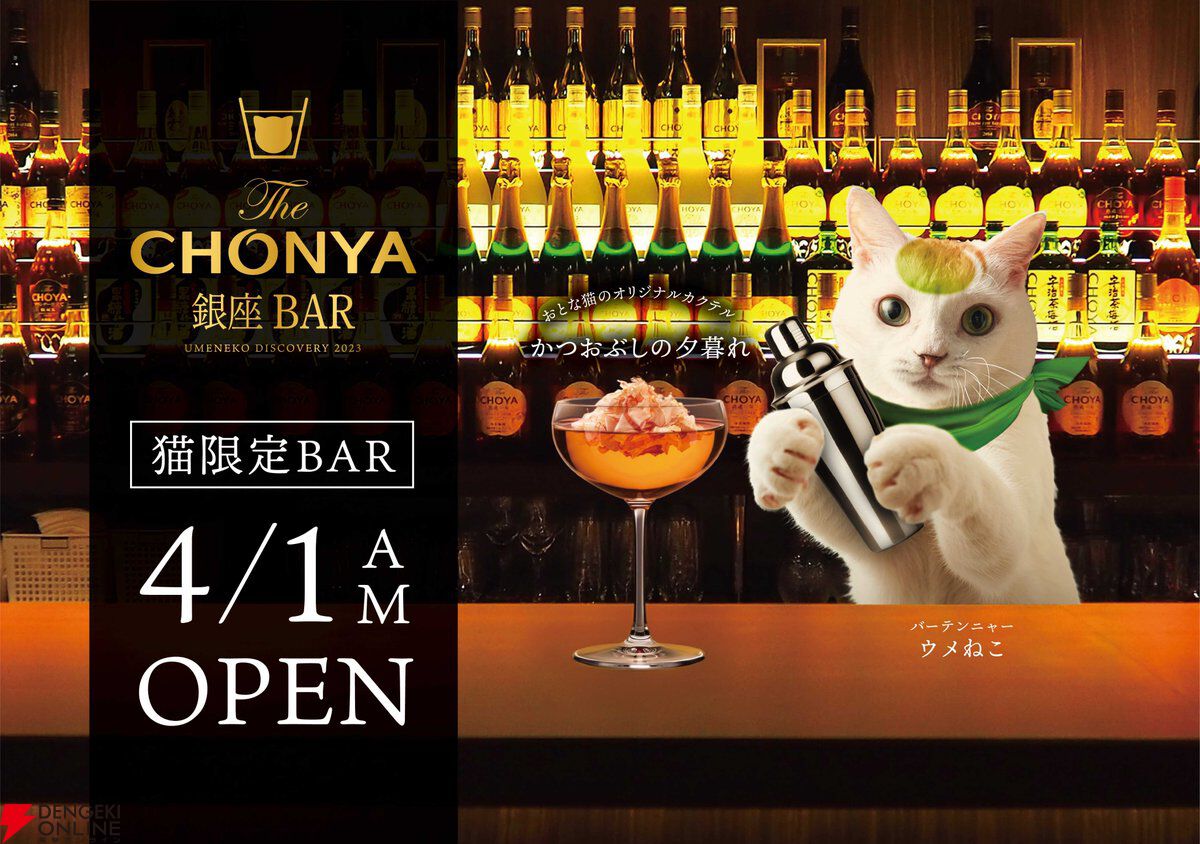 銀座に誕生する猫限定BARでは、若干凛々しめの“ウメねこ”が作る魚介のダシが利いた極上のカクテルを味わえるそうですが!?