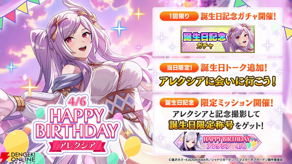 アレクシア誕生日記念限定ミッション開催! ミッションに挑戦して誕生日限定称号をゲットしよう!【カゲマス】