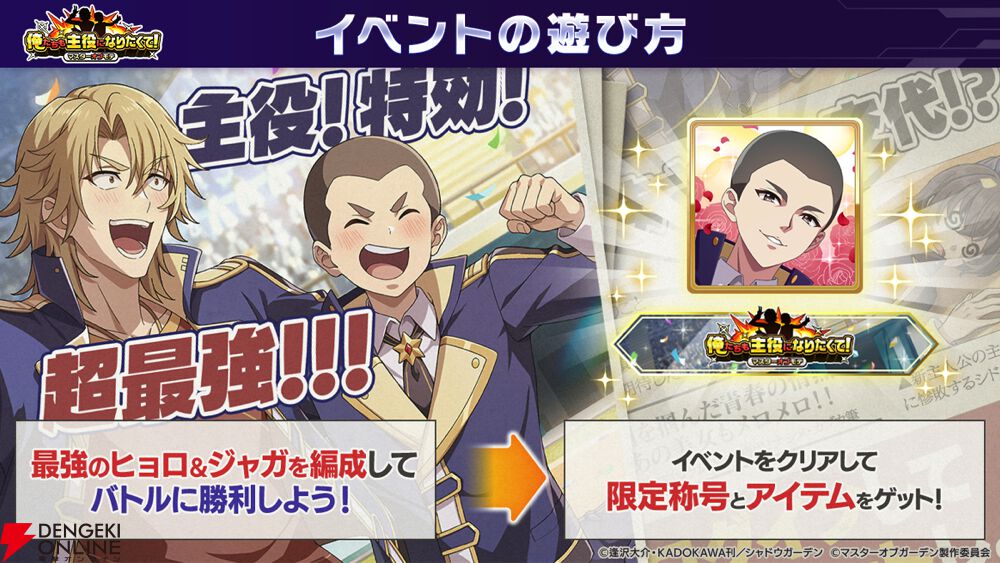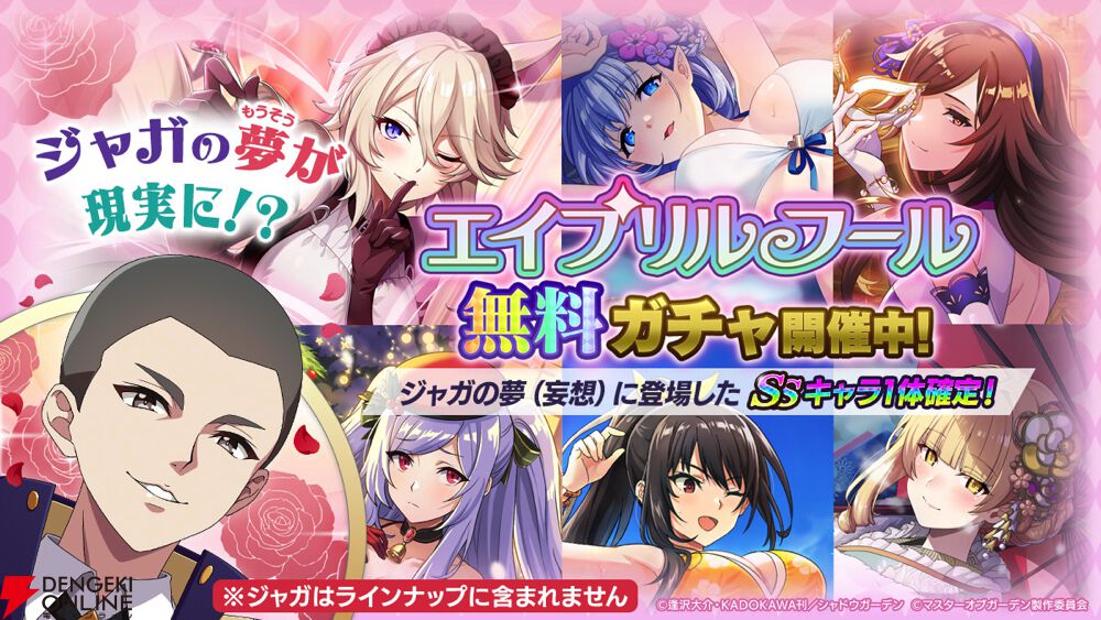 iOS/Android/PC用3DアニメーションRPG『陰の実力者になりたくて!マスターオブガーデン(カゲマス)』にて、エイプリルフール限定イベント“俺たちも主役になりたくて!マスターオブモテ”が開催されます。