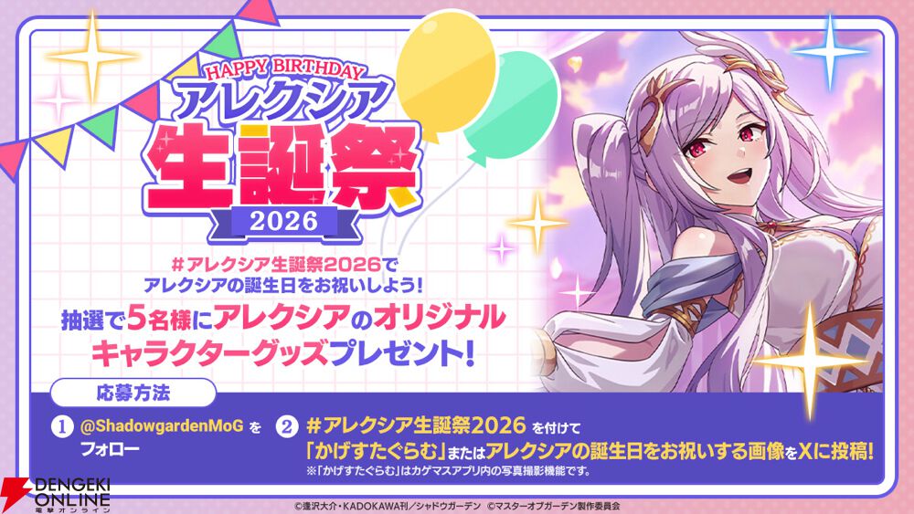 ■ アレクシア生誕祭SNSキャンペーン開催! キャンペーンに参加してオリジナルグッズをゲットしよう!【カゲマス】