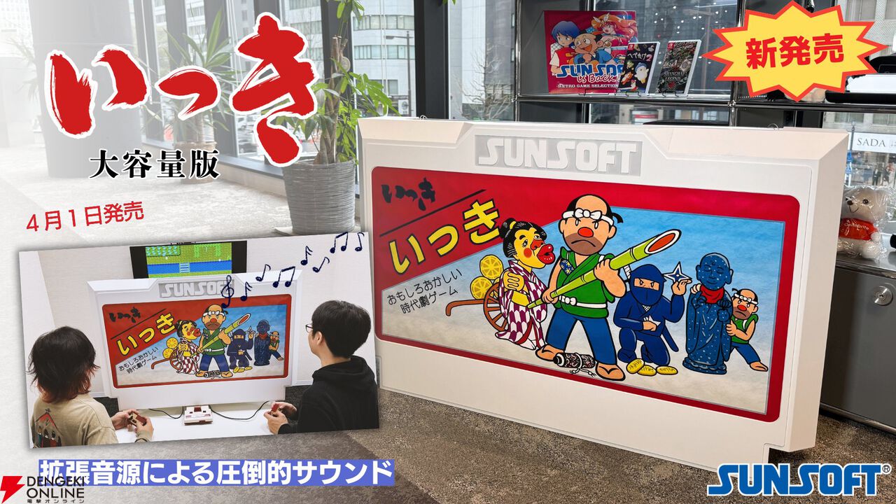 サンソフトの公式Xにて、『いっき』の大容量版ゲームカセットが4月1日に発売されると発表されました。