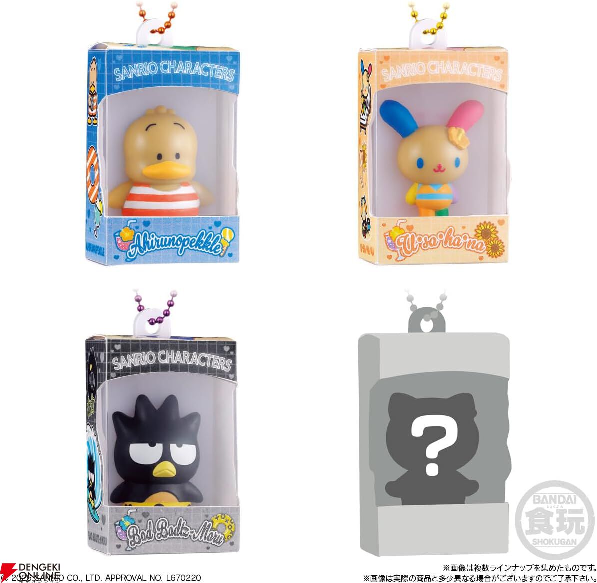 楽天市場の他の店で探すサンリオキャラクターズのフィギュアが入った食玩です。ボールチェーン付きのミニフィギュアで、カバンなどに付けるアクセサリーにピッタリです。