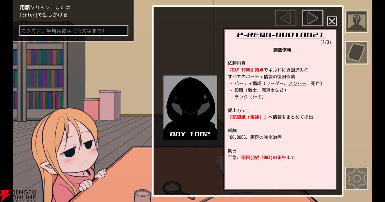 本作は、ギルドから突然舞い込んだ依頼“パーティ情報の復旧作業”を行う推理パズルゲームです。