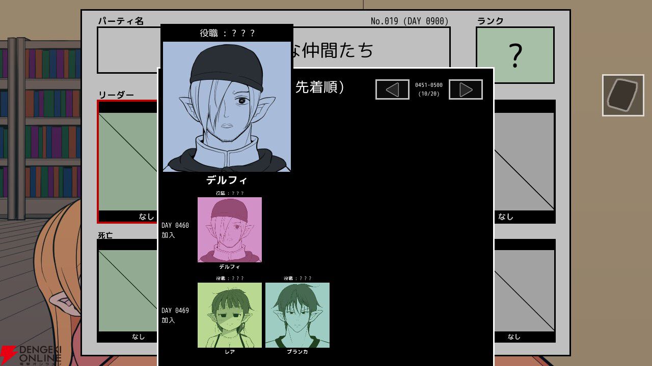 プレイヤーは“記憶士”(実際は記録をため込む“記録士”らしいのだが、そう呼ばれているらしい)として情報復旧の依頼を受け、78人の冒険者を20のパーティに正しく当てはめる作業を行います。手がかりとなるのは、主人公が溜め込んだギルドに関する資料です。