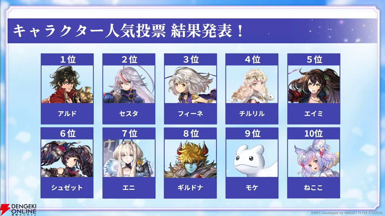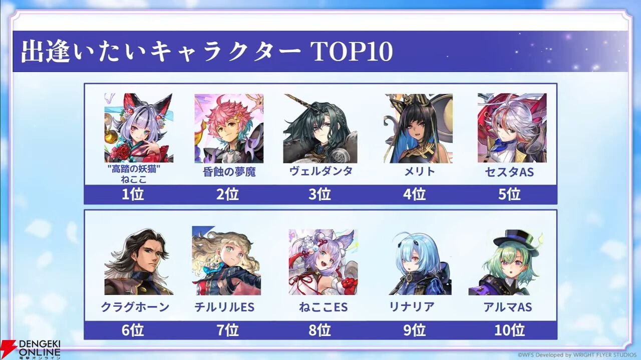 キャラクター人気投票の総合、出逢いたいキャラのTOP10が発表。詳細な順位は後日公式X、ゲーム内で公開される予定です。