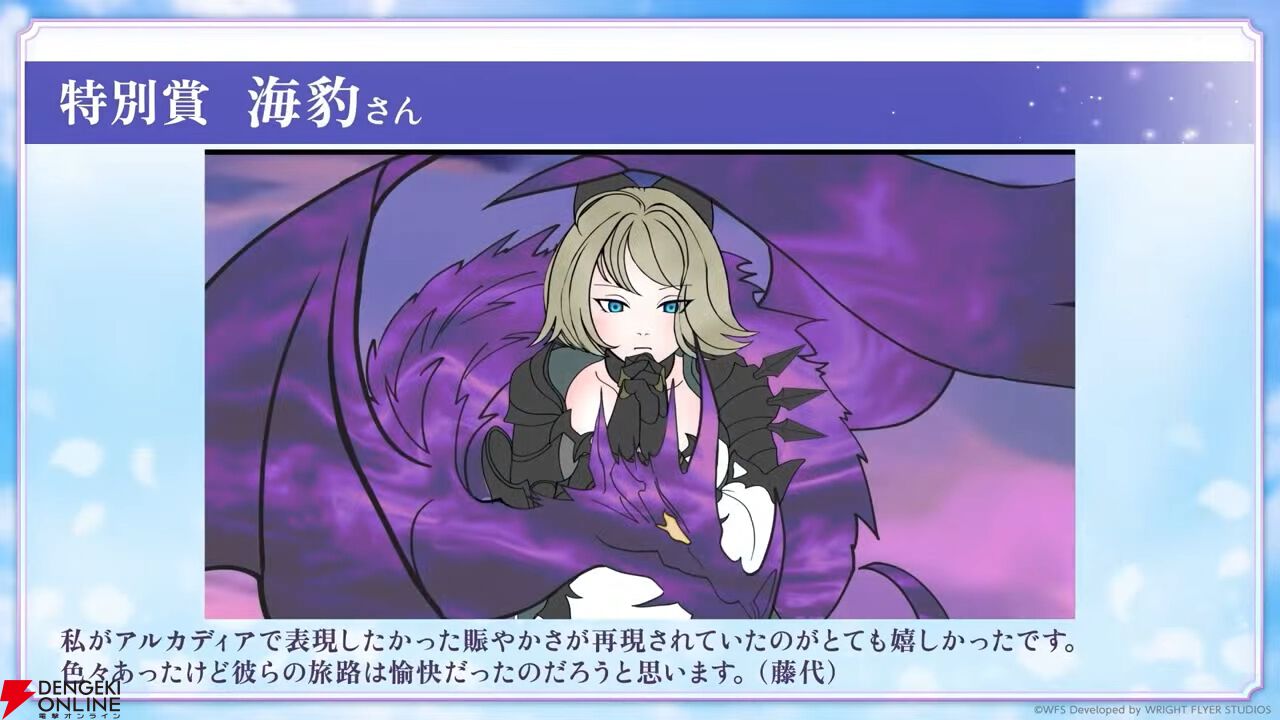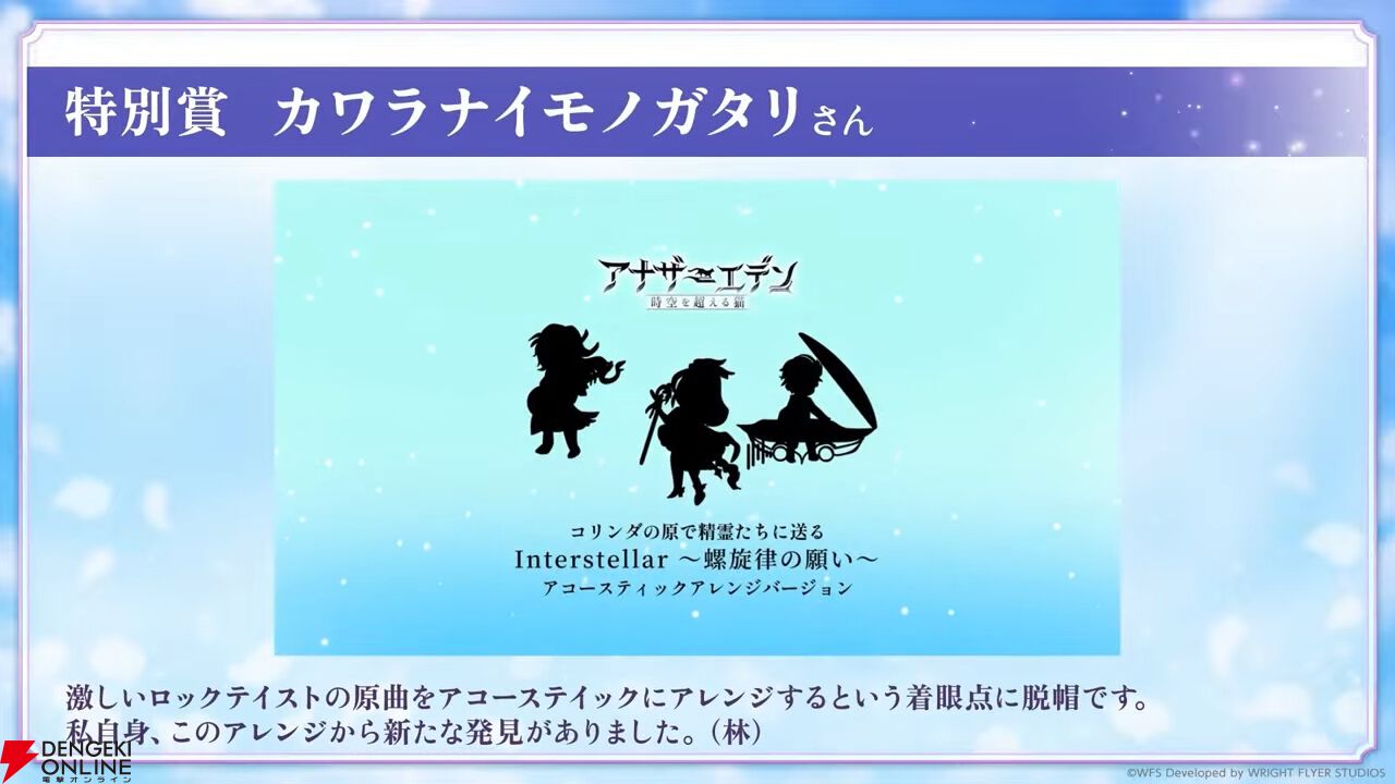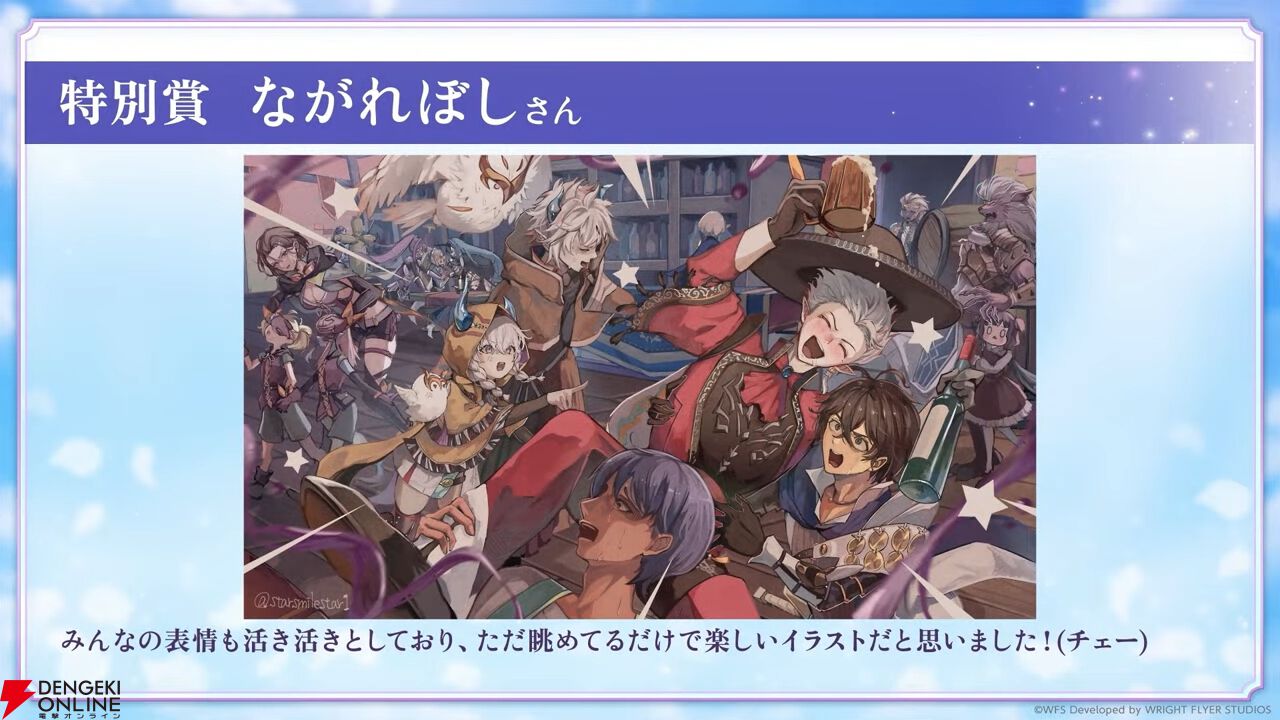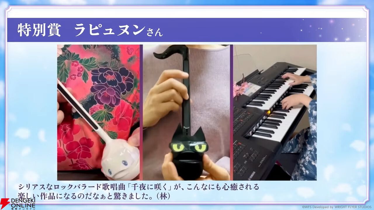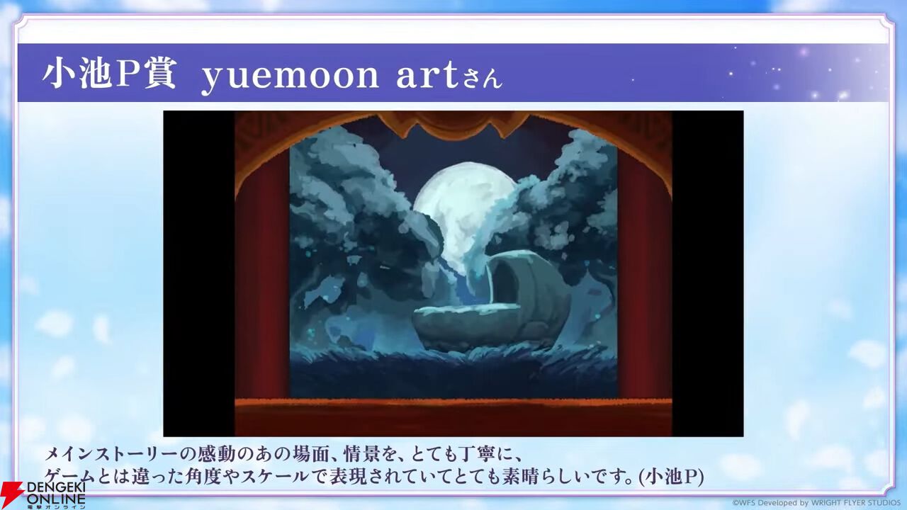 アートコンテストの結果が発表。イラストだけでなく動画、音楽なども受賞しており、発表は動画で行われました。