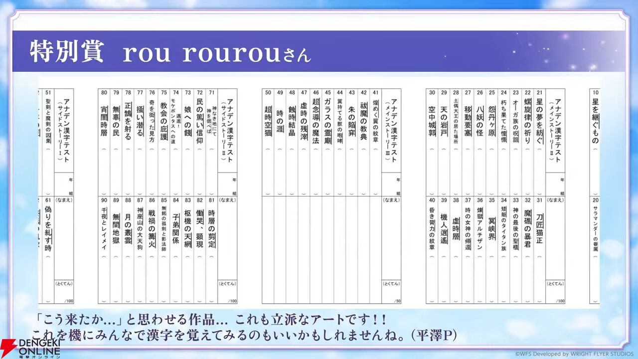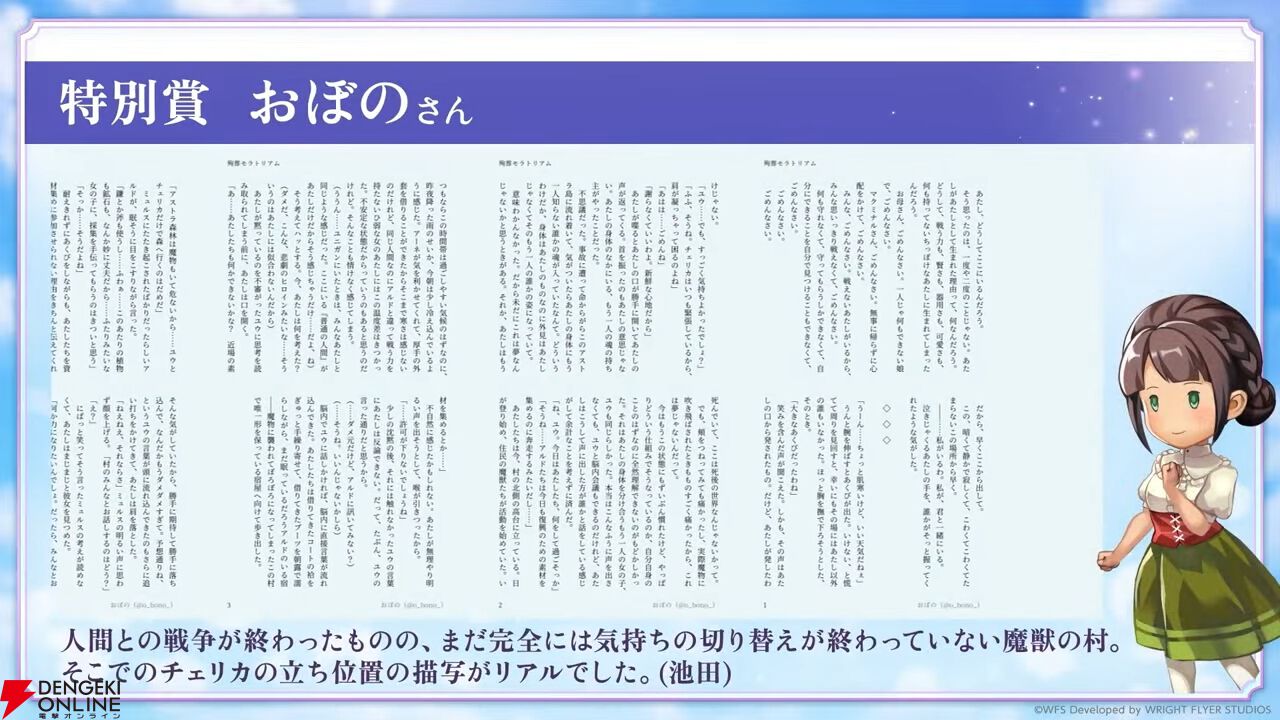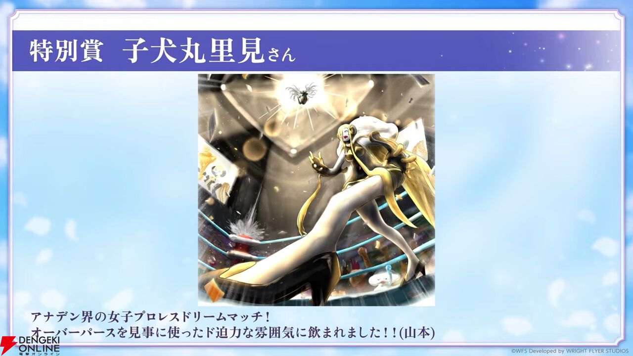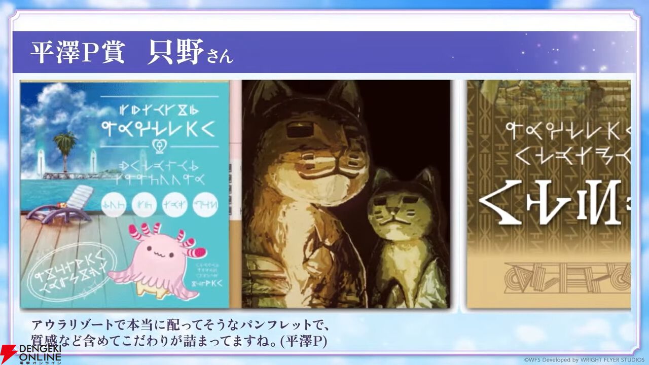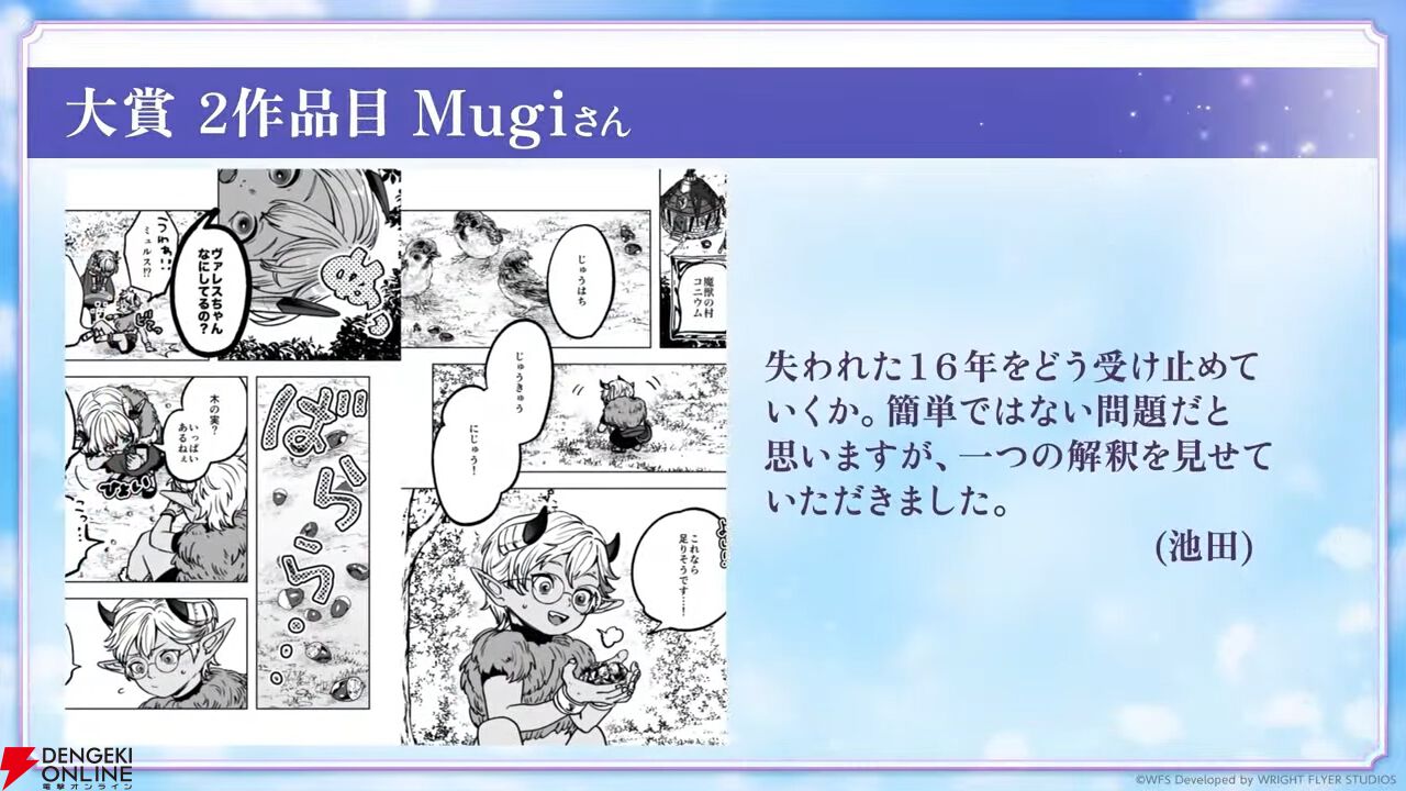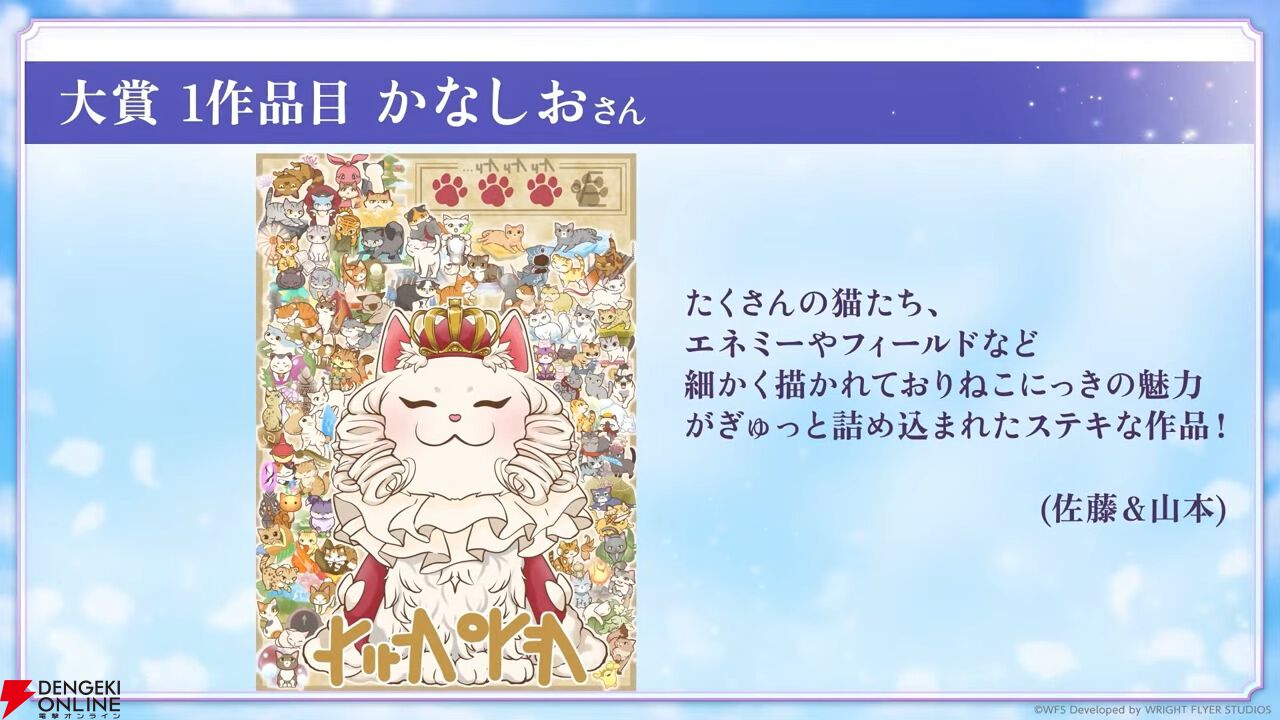 アートコンテストの結果が発表。イラストだけでなく動画、音楽なども受賞しており、発表は動画で行われました。