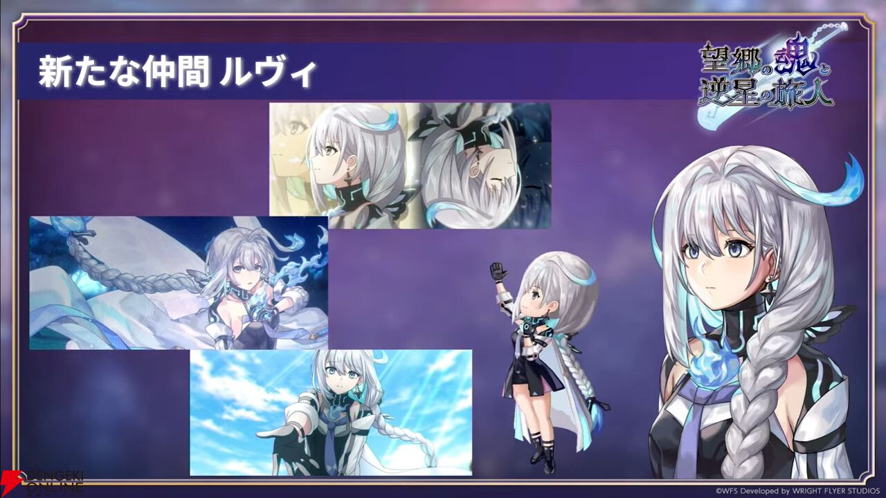 “望郷の魂と逆星の旅人”の主要キャラはルヴィ(声優:伊藤美来)。第1弾では新キャラとしてエレノア(声優:井上ほの花)なども登場します。