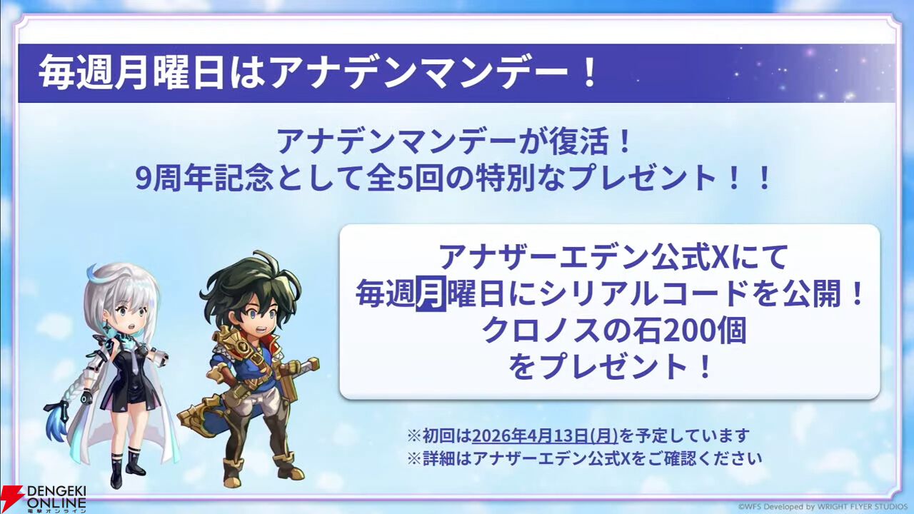 4月4日18時から放送された“アナデンまつり2026春”で、iOS/Android/PC用RPG『アナザーエデン 時空を超える猫』の最新情報が公開されました。